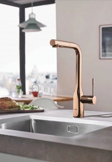 Опис Змішувач для кухні Grohe Essence, довж.виливу - 204мм, поворотний/витяжний, 1важіль, теплий захід сонця