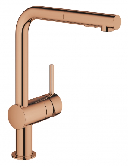 Кухонний змішувач GROHE MINTA в глянцевому кольорі теплий захід сонця - це видатний дизайн! Одноважільний змішувач GROHE Minta робить акцент на дизайні і збагачує кухню своєї професійною ефективністю.