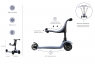 У варіанті 3-колісного самокату дитина розміщується стоячи на деці і керує самокатом самостійно.