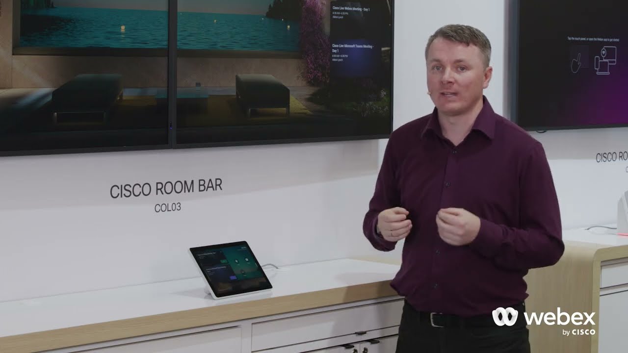 Room Bar підтримує пряме підключення до ПК через роз’єм USB Type-c – що дозволяє його використовувати як зовнішню USB-камеру, зовнішній USB-мікрофон та зовнішній Динамік час організації веб-нарад на комп’ютері. Вбудована 4-точкова мікрофонна система з формуванням променя забезпечує надійне шумозаглушення та оптимізацію звуку для конкретного приміщення. Вбудоване апаратне шифрування аудіо та відеотрафіку під час відеоконференцій.