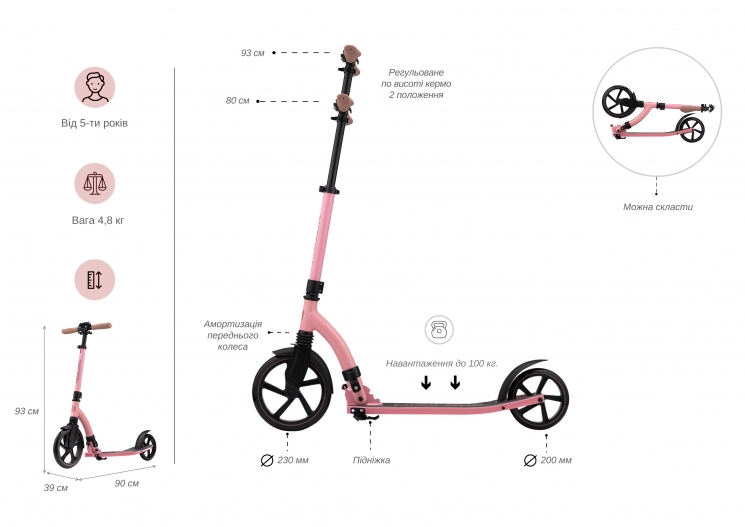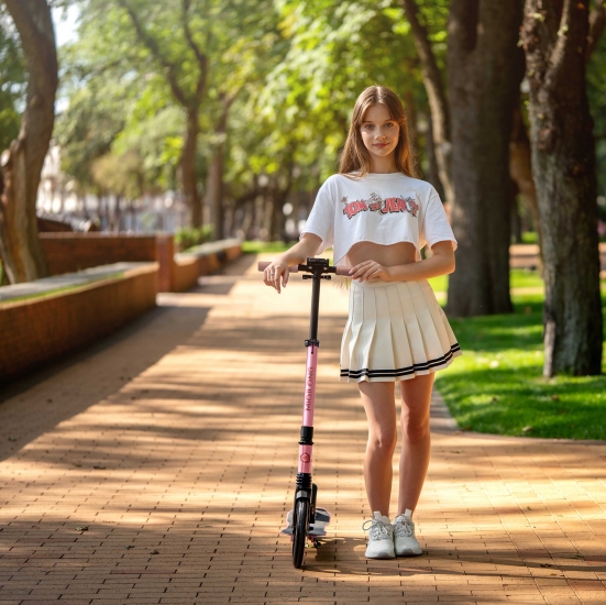 2E Tango – стильний і надійний самокат для дорослих і підлітків, який поєднує зручність, легкість та високу маневреність. Міцна, проте легка конструкція з алюмінієво-сталевою рамою витримує навантаження до 100 кг, вага самоката – лише 4,3 кг. Зручна дека розміром 53 × 11 см – оптимально для стійкості та комфорту. Великі поліуретанові колеса 200 мм забезпечують плавний хід і комфортну їзду. Регульоване за висотою кермо (83,5–100 см) дає змогу адаптувати самокат відповідно до зросту користувача. Модель має надійне сталеве ножне гальмо – для безпеки та контролю під час руху. 2E Tango – ліпший вибір для поїздок містом, активного відпочинку та щоденного використання.