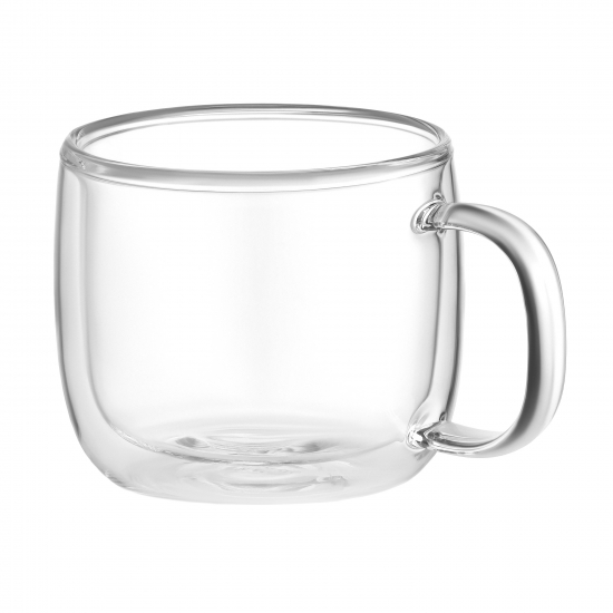 Вироби виготовлено з боросилікатного скла, стійкі до подряпин і не взаємодіють із напоями. Кожну чашку створюють вручну, тому вони є унікальними та мають характерний отвір на дні через спеціальний спосіб видування скла. Повітряний прошарок між двома стінками зберігає напої теплими, не нагріваючи зовнішньої поверхні. Чашки можна мити в посудомийній машині до 50 разів і використовувати в мікрохвильовці за температури до 100 °C. У комплектованні – дві чашки.