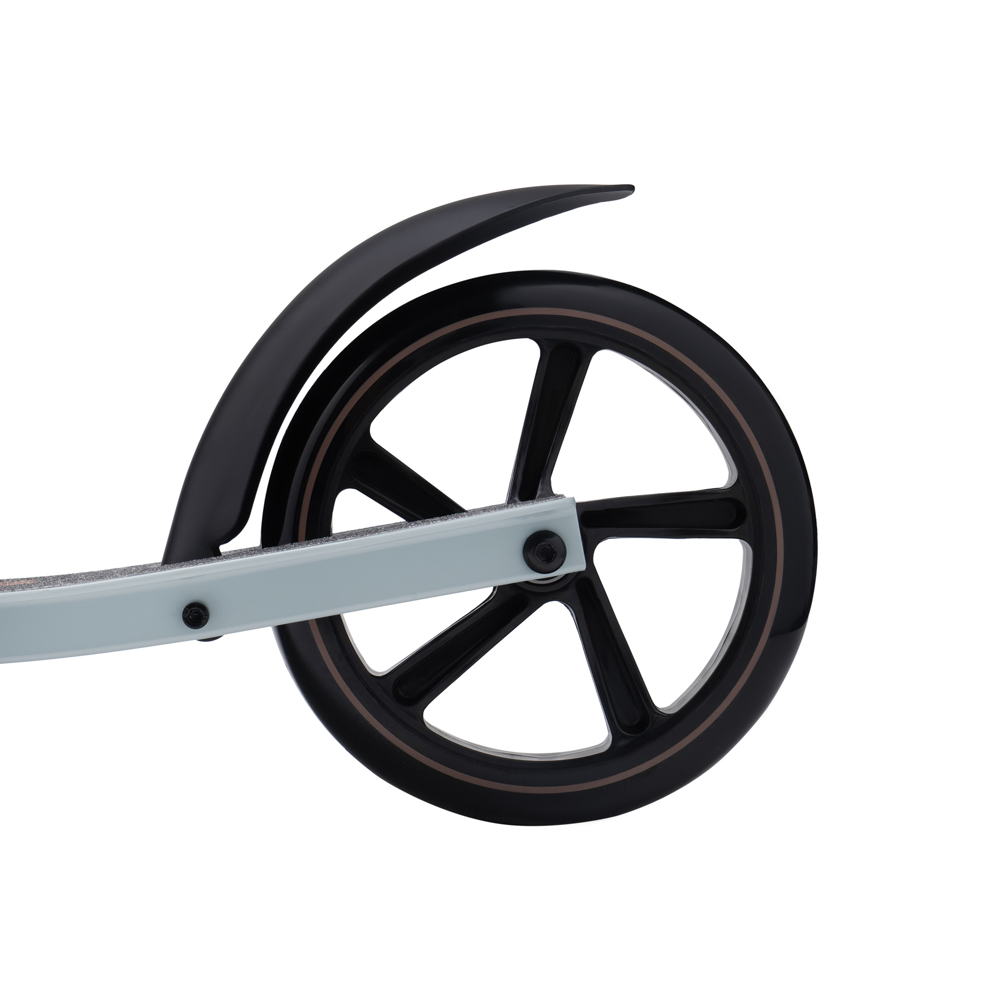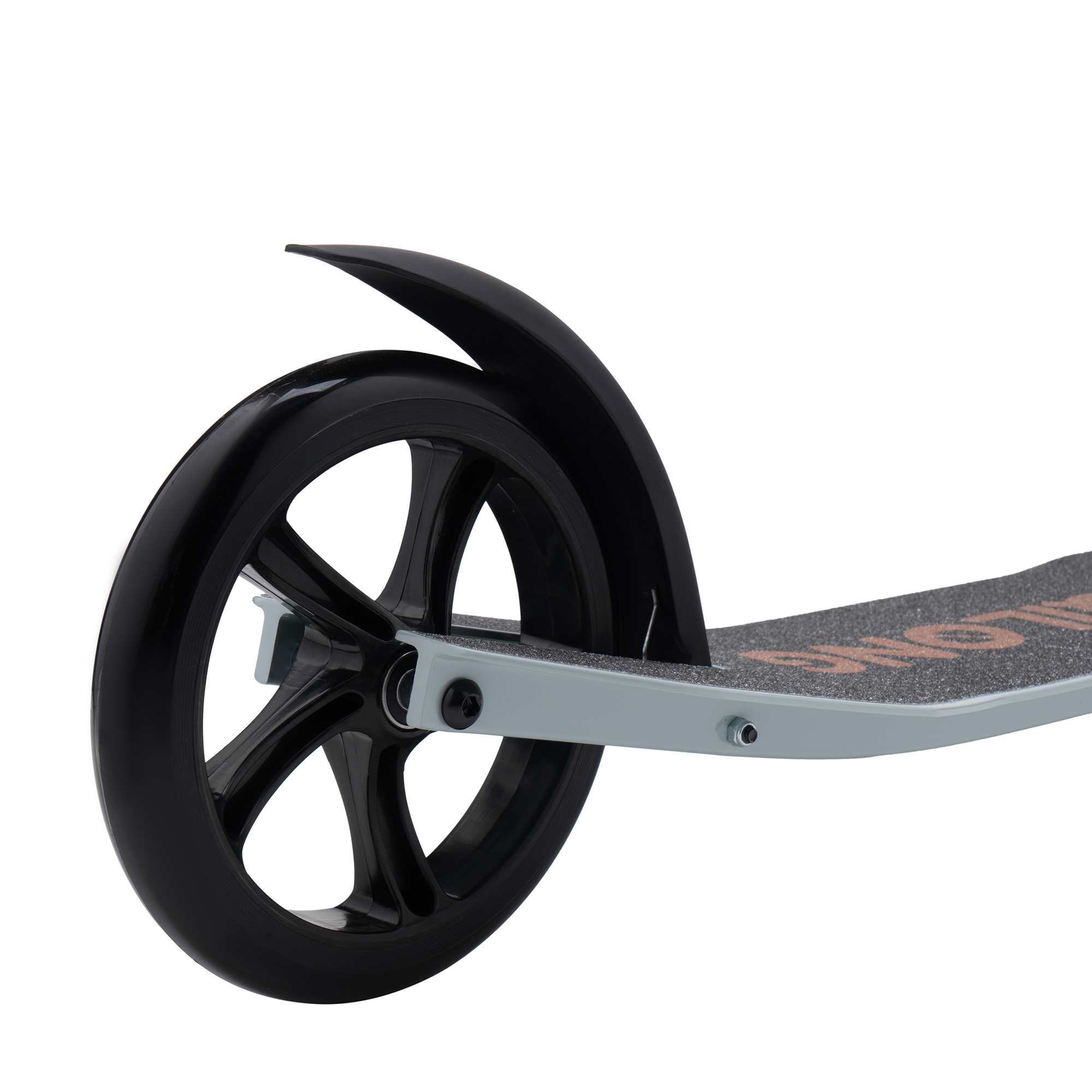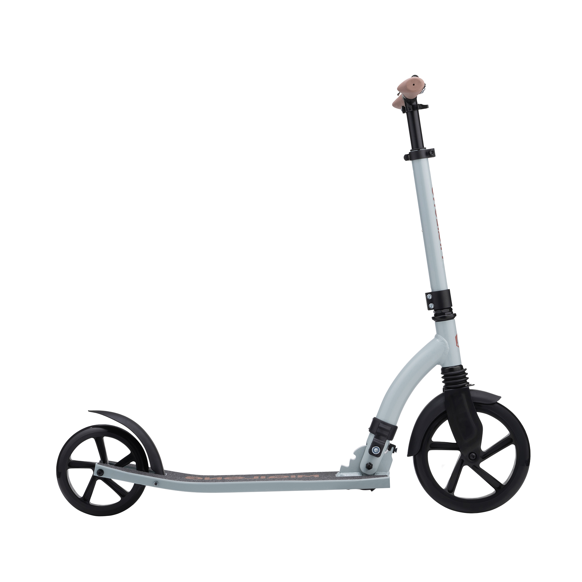 Для зручності зберігання та транспортування самокат повністю складається, включаючи ручки. Ручки фіксуються затискним механізмом, який забезпечує повну відсутність вібрації в місцях фіксації.