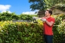 Вертикальний кущоріз Ryobi RPT4545E – електричний інструмент з двостороннім ножем для обробки декоративних чагарників, догляду за деревами. Алмазне шліфування гарантує рівне різання гілок. Модель відрізняється 4-позиційної регулюванням кута нахилу лез. У комплект входить додаткова штанга, що дозволяє працювати без використання драбини. Максимальний діаметр різу становить 20 мм. Ріжучий елемент має можливість регулювання кута нахилу до 135°, а значить дозволяє працювати навіть у важкодоступних місцях. Завдяки додатковій штанзі, можна пиляти сучки на великій висоті. Основна рукоятка має обгумоване покриття GripZone – для комфортного утримання інструменту.