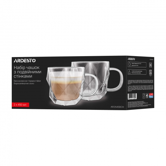 Набір чашок з ручками і подвійними стінками ARDESTO, 450мл, 2шт (AR2645BCH)