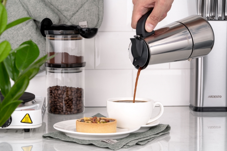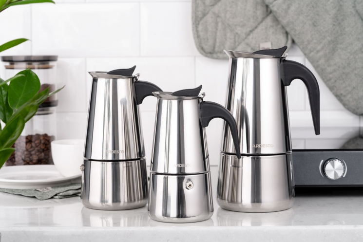 Швидко й за мінімальних зусиль отримати заряд бадьорості допоможе гейзерна кавоварка ARDESTO. Принцип роботи надзвичайно простий: гаряча вода, що витісняється під тиском пари, підіймається з нижнього резервуара у верхній через відділення з меленою кавою.