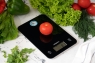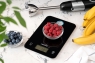Ваги оснащені високоточним електронним механізмом. Максимальна вага для вимірювання – 5000 грам, з дискретністю у 1 г. Для відображення результатів є контрастний світлодіодний дисплей, керування – сенсорне, а для живлення використовується два елементи формату CR2032.