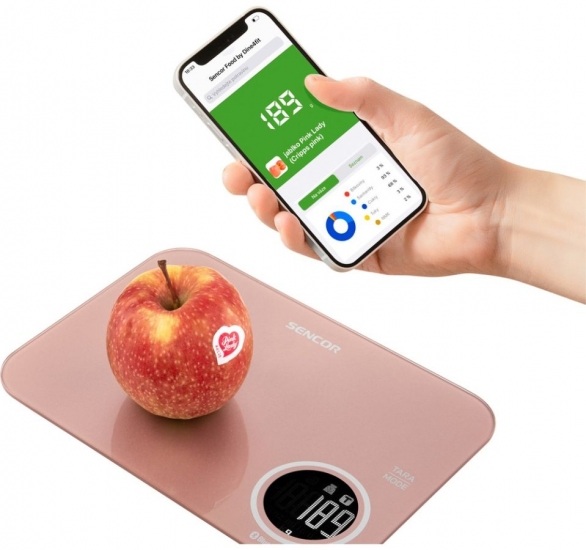 Особливості товару Ваги Sencor кухонні, 5кг, підключення до смартфону, AAAx2, пластик, рожевий