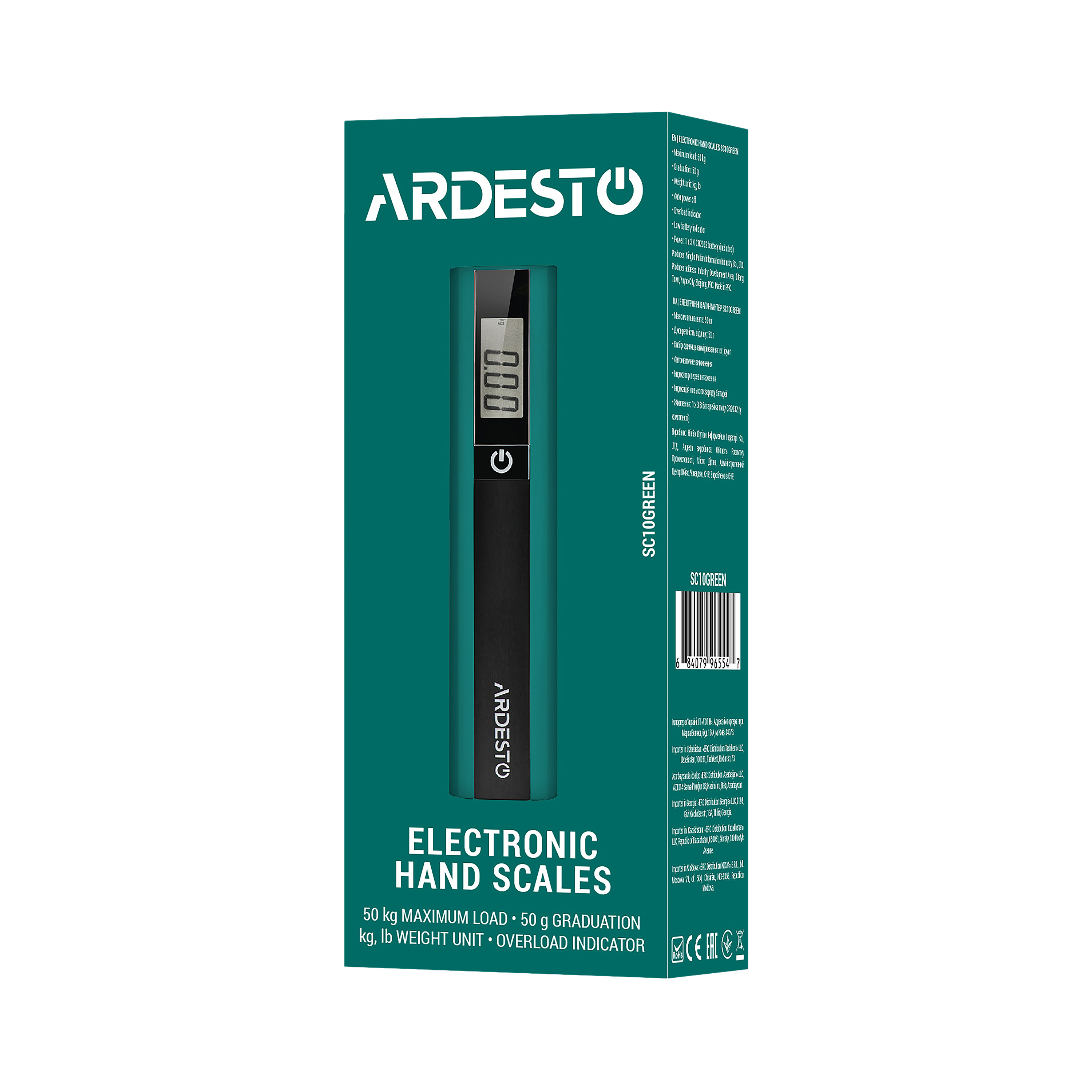Ваги виконані у корпусі з міцного пластику, а нейлоновий ремінь доповнено металевим гачком. Доступно дві одиниці вимірювання ваги – g (грам) та lb (фунт). Для відображення результатів є LCD-дисплей, керування відбувається за допомогою клавіши, а для живлення використовується один елемент формату CR2032. Також передбачено індикатор низького заряду, перевантаження та функція автоматичного вимкнення.