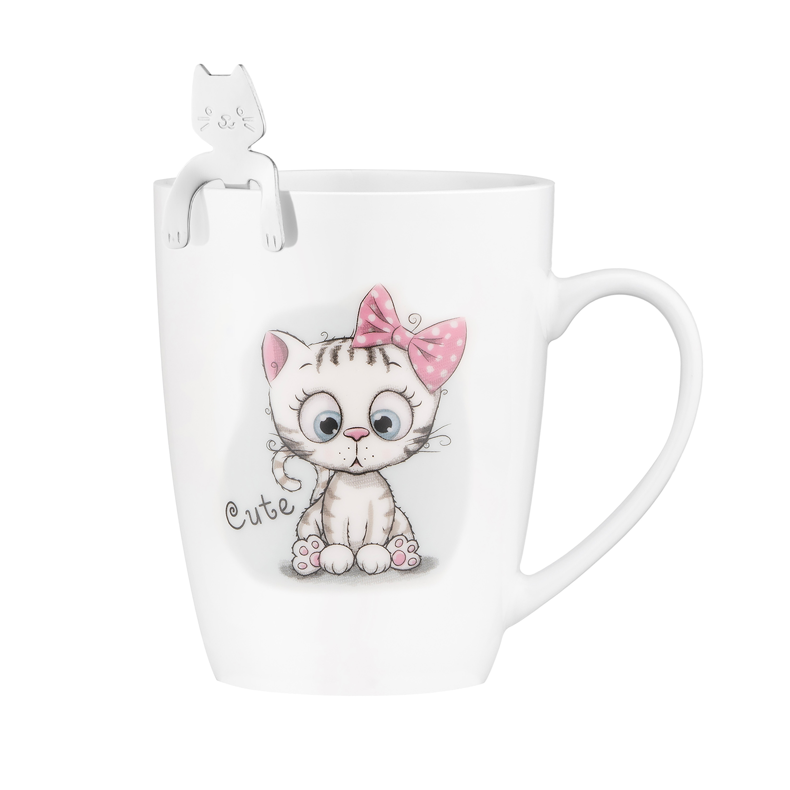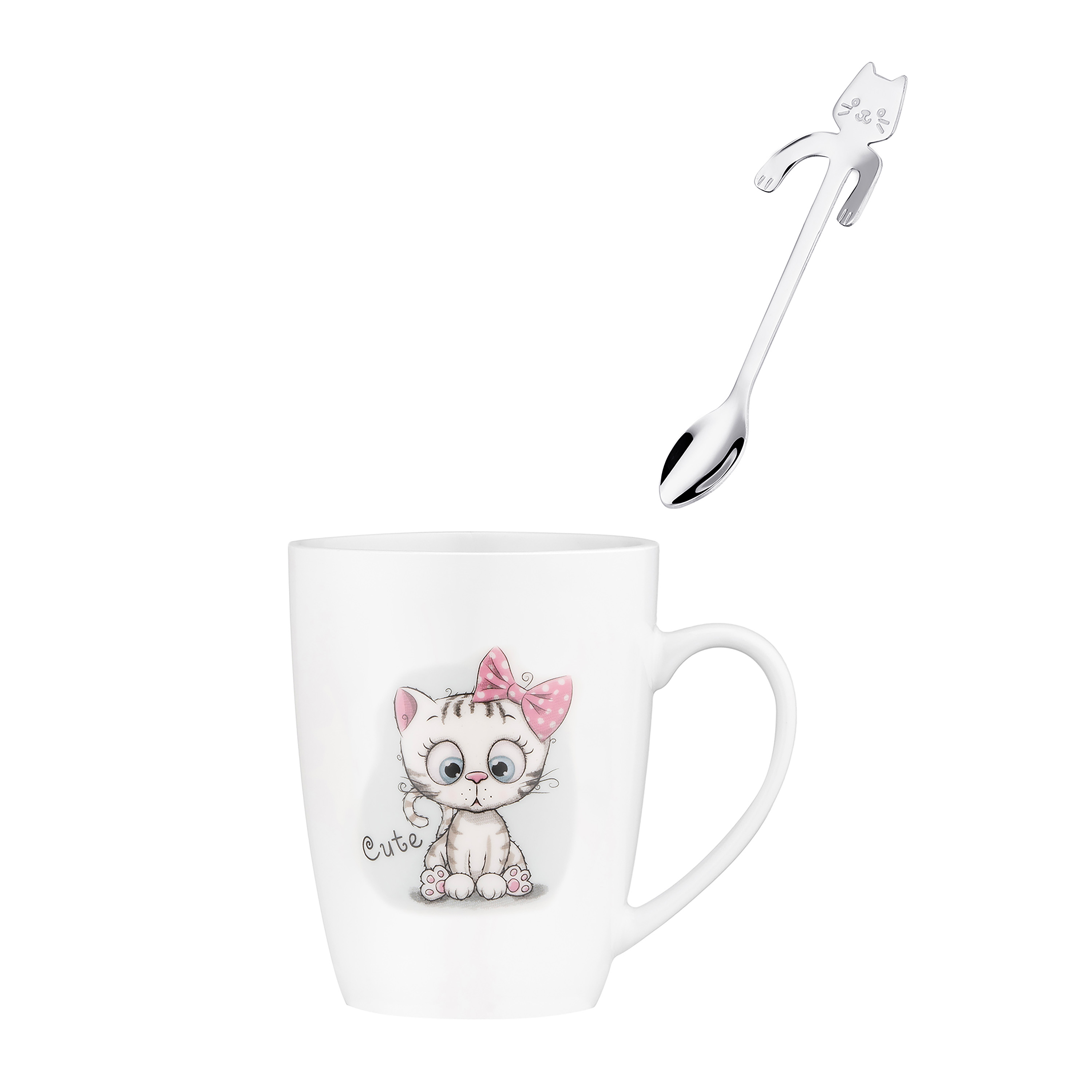 ARDESTO Чашка с ложкой Cute, 320мл, фарфор, нержавеющая сталь, белый