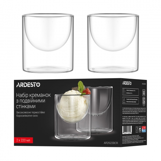 Опис Набір креманок з подвійними стінками ARDESTO, 220мл, 2шт, боросилікатне скло, прозорий