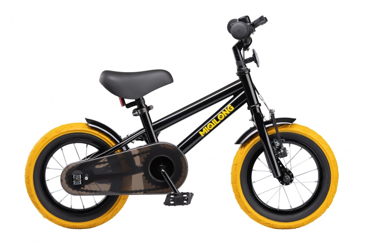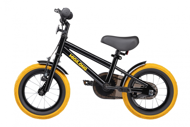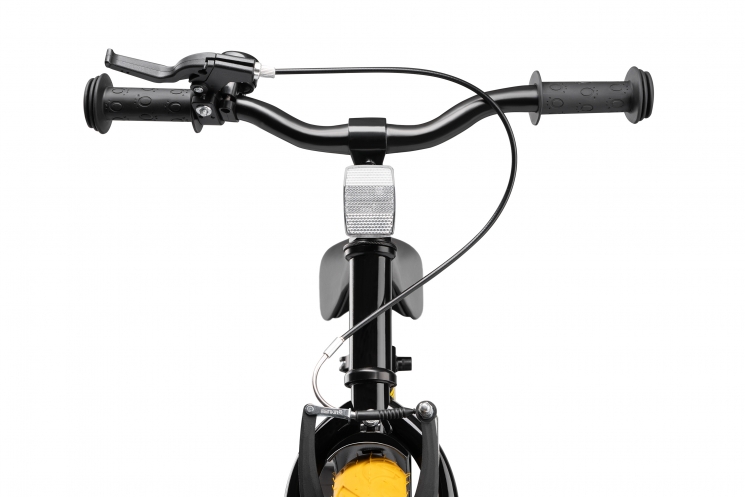 Кермо і сидіння регулюються по висоті в широкому діапазоні. Сидіння м'яке, з покриттям з ECO-шкіри. Гріпси керма м'які гумові, з бічним захистом рук при падінні. Ручне гальмо V-Brake на передньому, і ніжні гальма на задньому колесі. Така комбнація, на відміну від повністю ручного гальма, дозволить навіть самим маленьким велосипедистам гальмувати, адже маленьким діткам іноді складно гальмувати ручним тормзом. Диск колеса 12` традиційний, шпицевий з класичної втулкою на підшипниках. Високий і широкий профіль покришки забезпечать комфортне катання як по асфальту, так і по нерівностям. Колеса додатково захищені бризковиками, пофарбованими в колір велосипеда і надійно захистять від бруду і бризок.