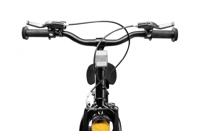 Крім цього, при розробці цієї моделі подбали і про комфорт. Рама сконструйована за канонами міського велосипеда з високою рамою, де кермо і сидіння забезпечують посадку з рівною спиною. Кермо і сидіння регулюються по висоті в широкому діапазоні. Сидіння м'яке, з покриттям з ECO-шкіри. Гріпси керма м'які гумові, з бічним захистом рук при падінні. Ручне гальмо V-Brake на передньому, і задньому колесі. Диск колеса 16` традиційний, шпицевий з класичною втулкою на підшипниках. Високий і широкий профіль покришки забезпечать комфортне катання як по асфальту, так і по нерівностями. Колеса додатково захищені бризковиками, пофарбованими в колір велосипеда і надійно захистять від бруду і бризок.