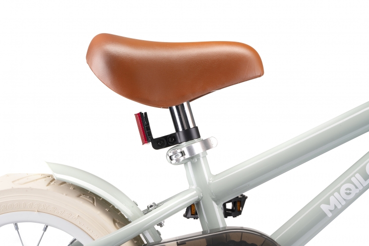 Диск колеса 12` традиційний, спицевий з класичною втулкою на підшипниках. Високий та широкий профіль покришки забезпечать комфортне катання як по асфальту, так і по нерівностям. Колеса додатково захищені бризковики пофарбовані в колір велосипеда і надійно захистять від бруду і бризок.