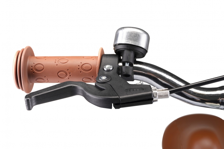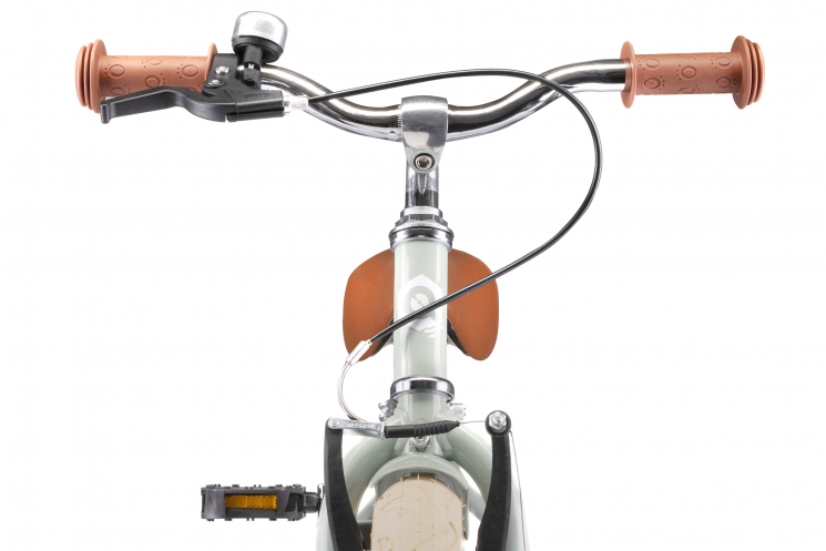 Кермо та сидіння регулюються по висоті в широкому діапазоні. Сидіння м'яке, з покриттям із ECO-шкіри. Грипси керма м'які гумові, з боковим захистом рук під час падіння. Ручне гальмо V-Brake на передньому і ножне гальмо на задньому. Подібна суміжна схема, де для гальмування заднім колесом потрібно натискати на педалі у зворотному напрямку, дозволить маленькій дитині легко освоїтися. Так як найменшим діткам буває складно користуватися ручним гальмом.