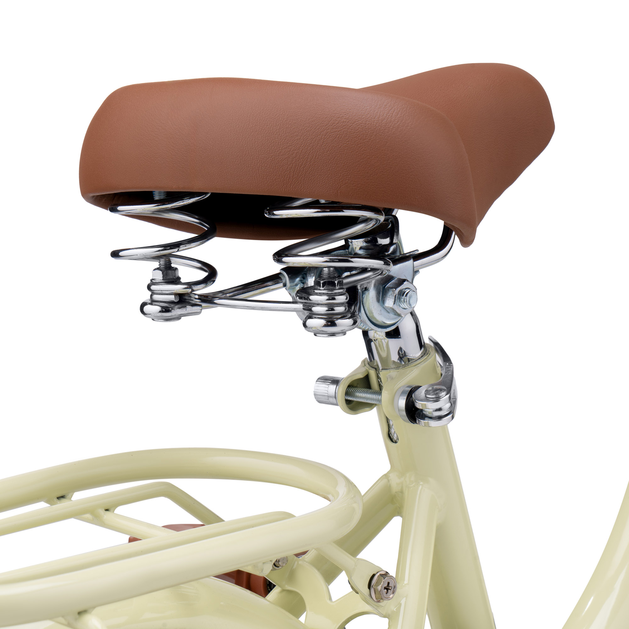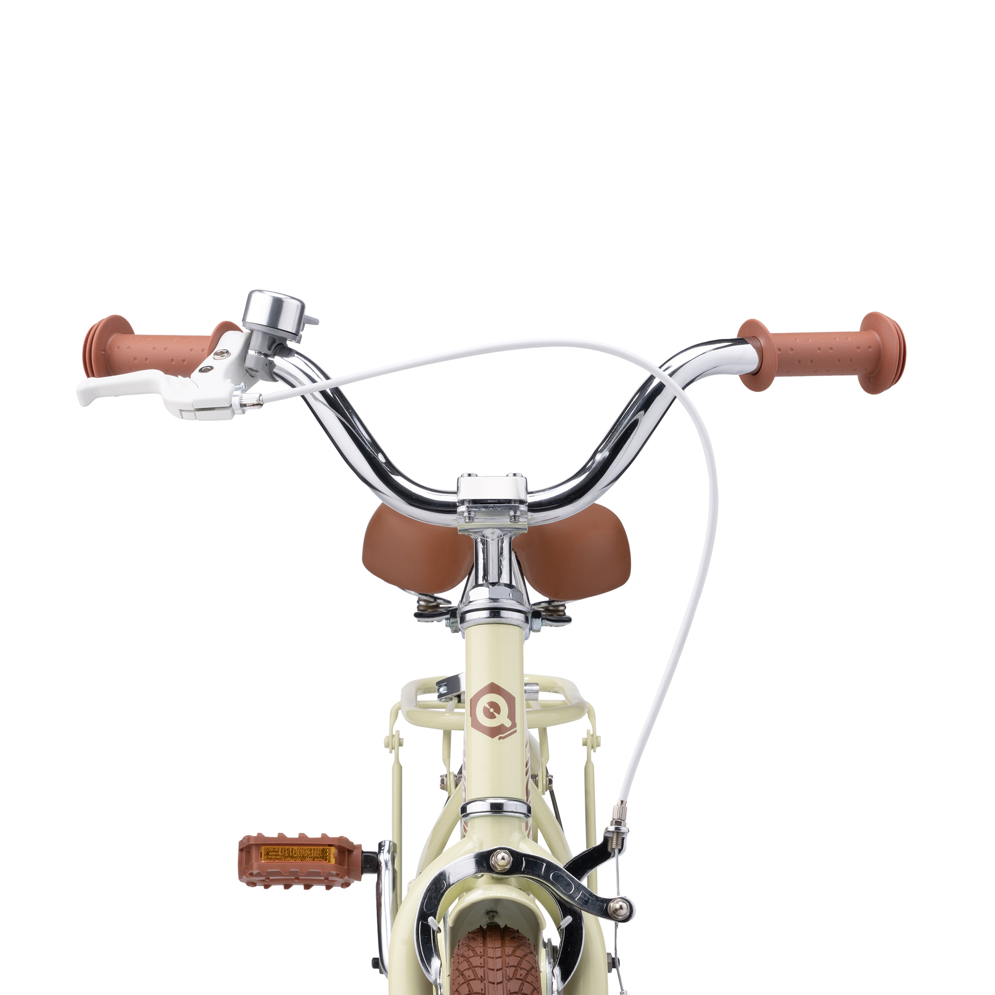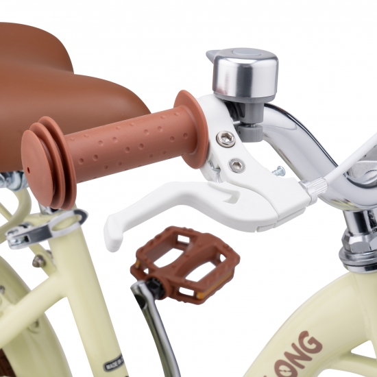 Кермо та сидіння регулюються по висоті в широкому діапазоні. Сидіння м'яке, з покриттям з ECO-шкіри та додатковими пружинами амортизації. Ручки керма м'які, гумові, з бічним захистом рук при падінні. Ручний гальмівний механізм U-Brake на передньому колесі та ножний гальмівний механізм на задньому. Така схема гальмування, де для зупинки заднього колеса потрібно натискати на педалі у зворотному напрямку, допоможе маленькій дитині легше звикнути до велосипеда, оскільки найменшим дітям іноді важко користуватися ручним гальмом.