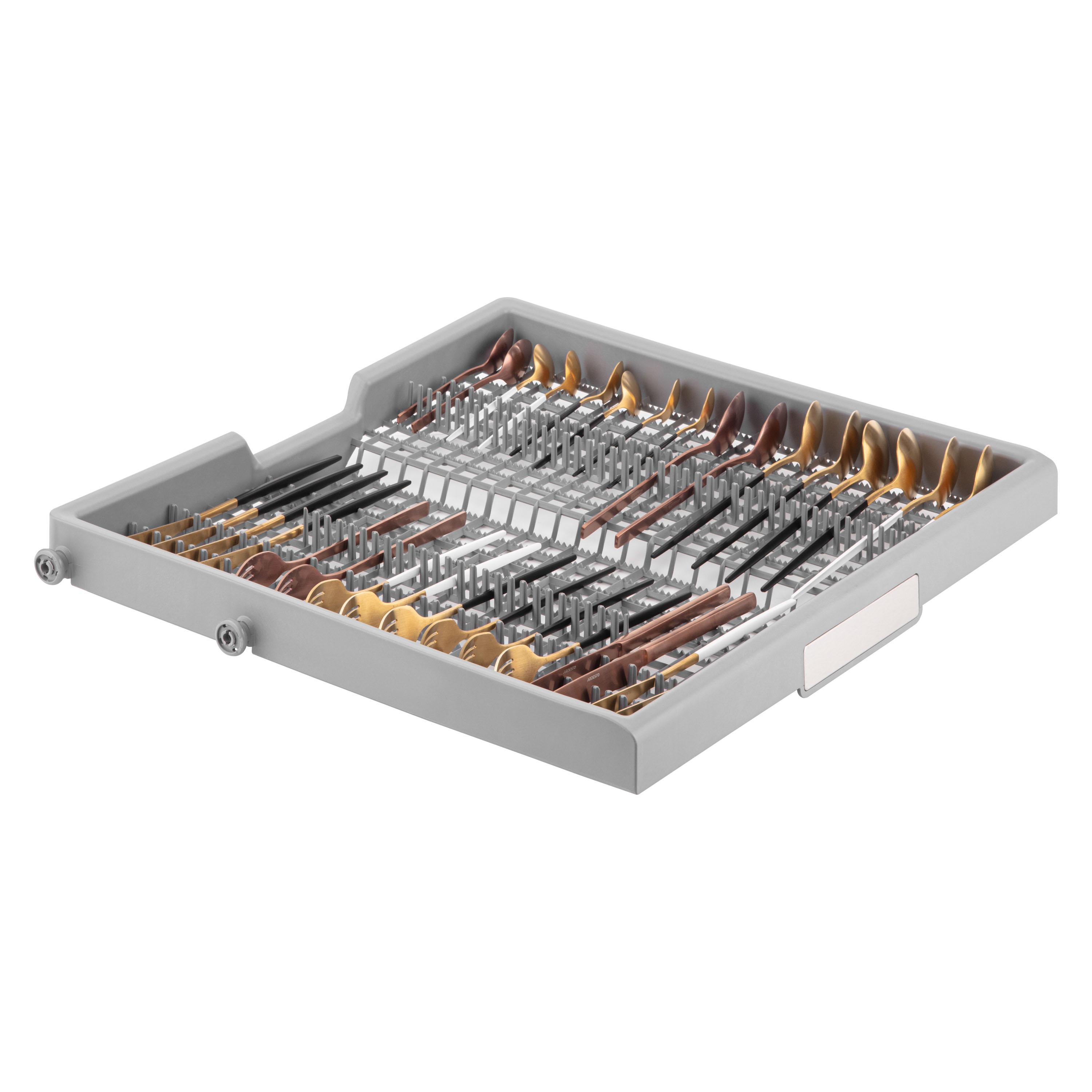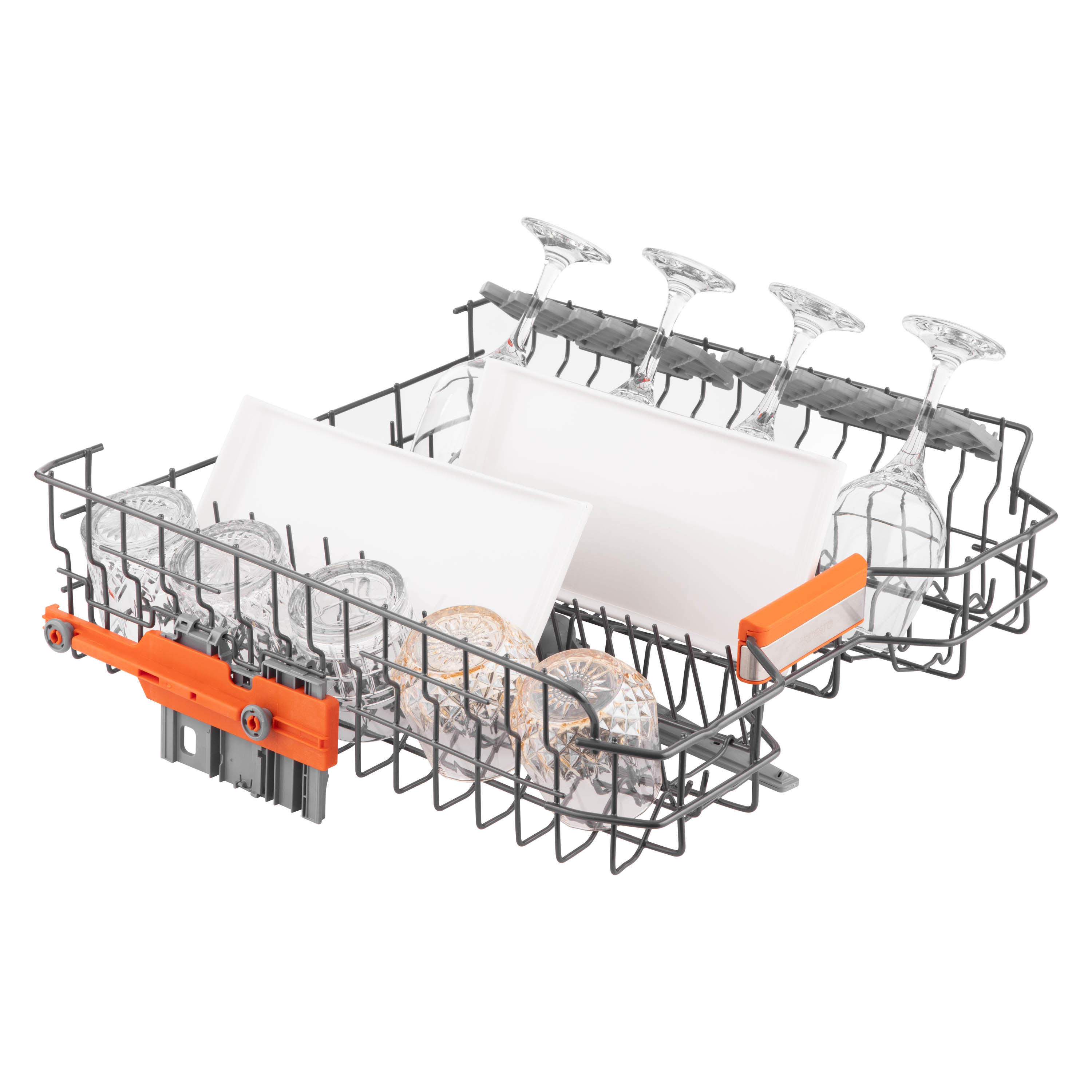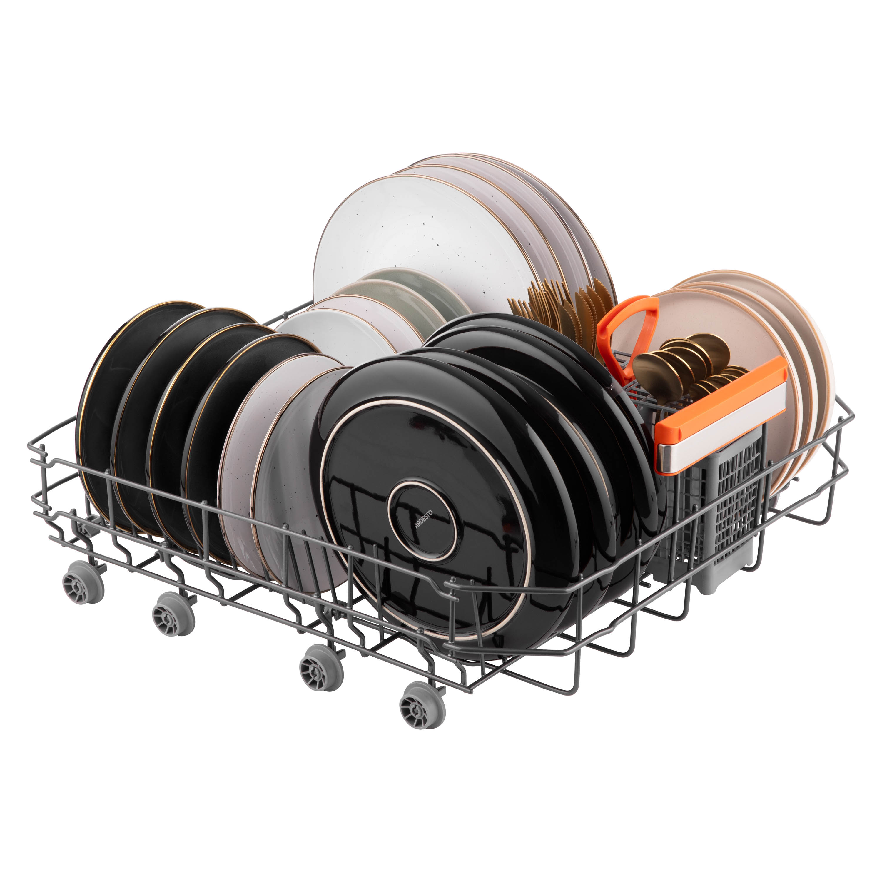 Продумана система завантаження з адаптивними знімними та розкладаними модулями забезпечує ефективне використання простору. З дворівневим регульованим верхнім кошиком, 2 полицями для кухлів, 2 розкладними полицями у верхньому та 4 у нижньому кошиках, універсальним знімним кошиком для столових приборів можна вимити багато посуду, значно скорочуючи витрати ресурсів і отримуючи при цьому гарні результати миття.