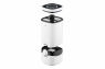 Зволожувач виконано у формі колони з міцного пластику білого кольору, який доповнено чорними глянсовими вставками. Ергономічна конструкція з верхнім заливом, дозволяє легко контролювати рівень води, а для керування передбачено пульт ДУ.