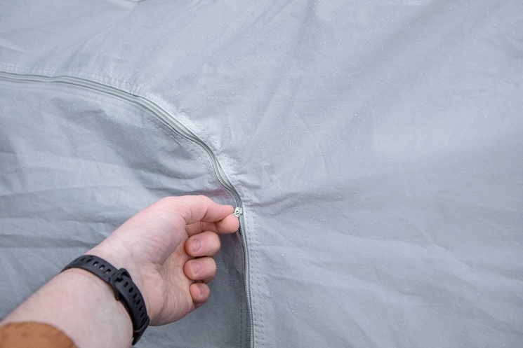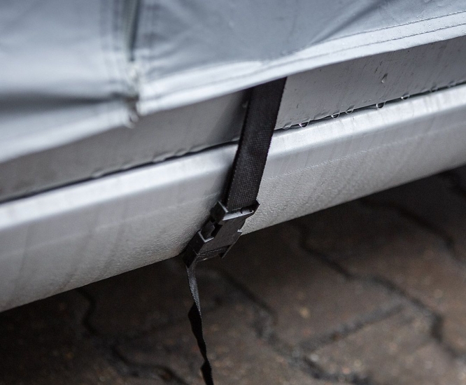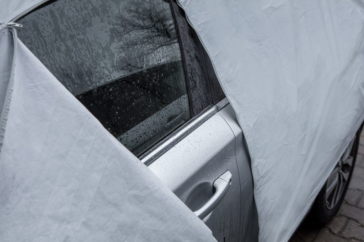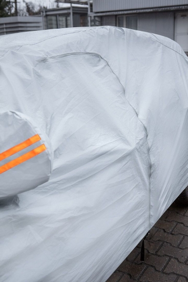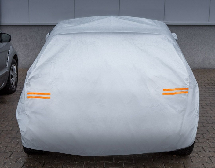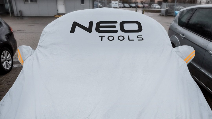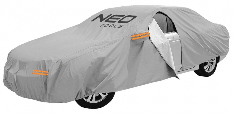 Багатошаровий чохол для автомобіля (2 шари, водонепроникний) XL, 10-475 від NEO TOOLS - це водонепроникний чохол розміром 5,3 х 1,8 х 1,2 м. Виготовлений з непроникного матеріалу PEVA з додаванням бавовни. Він має практичну застібку знизу для запобігання скручуванню та дверний отвір для швидкого доступу до автомобіля.