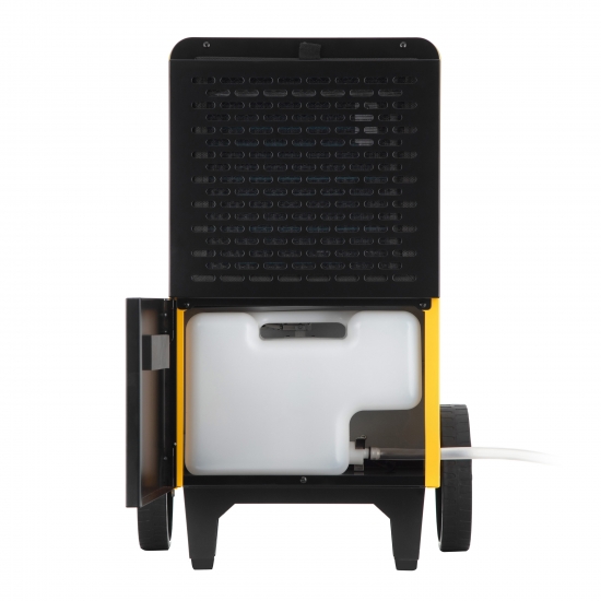 Осушувач повітря 2E-ID750-50L працює в діапазоні температур від +5 до +35°C із продуктивністю відведення до 50 літрів вологи на добу. Злив конденсату може здійснюватися як в ємність так і дренаж (каналізацію).