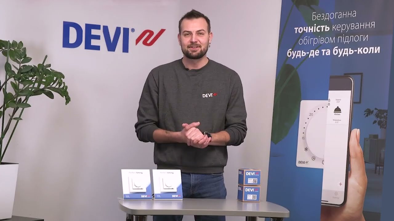 Головна - Продукція та рішення для підприємств - Відеоспостереження. Розумний дім - Терморегулятори - DEVI - Терморегулятор DEVIreg Room +4...45° механічний програмований Bluetooth вбудований 16A 230В білий