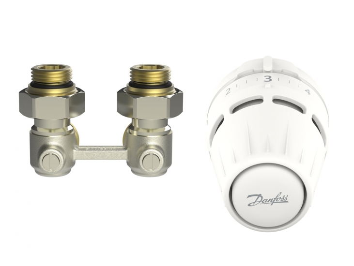 Технічні характеристики Комплект термостатичний Danfoss Regus RA + RLV-KB, H-подібний, нижнє підкл, 1/2", кутовий: