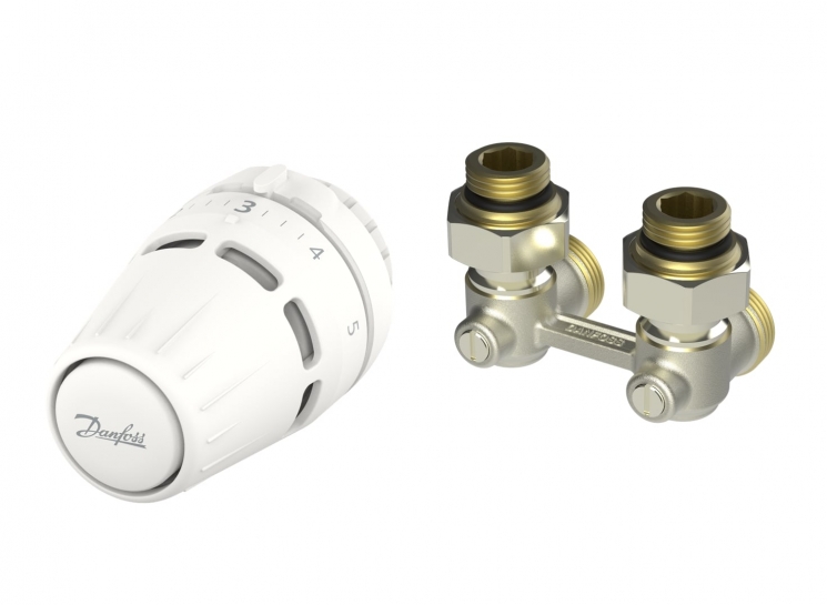Комплект термостатичний Danfoss Regus RA + RLV-KB, H-подібний, нижнє підкл, 1/2", кутовий