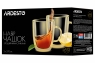 Набір Golden Moon містить дві чашки із подвійними стінками об’ємом 270 мл. Чашки виготовлено з боросилікатного скла. Його вважають найміцнішим з-поміж аналогів, стійким до подряпин, воно не вступає в реакцію з продуктами, є термостійким і оптично прозорим. Поліпшення якостей не впливає на вагу готових виробів – вони доволі легкі.