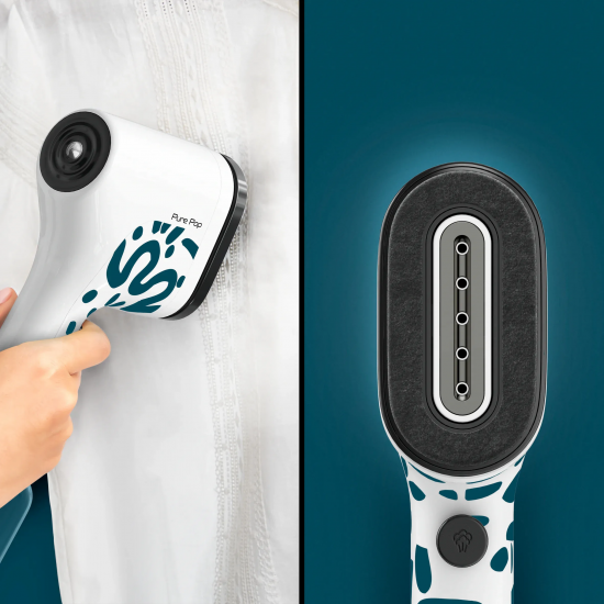 Опис Відпарювач Tefal компактний Pure Pop Home & Travel, 1300Вт, 70мл, постійна пара - 20гр, біло-синій