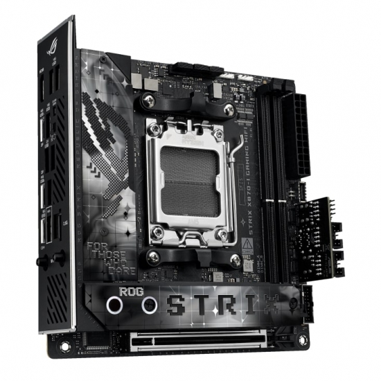 Повністю підтримуючи новий стандарт, Strix X870-I пропонує повну підтримку PCIe 5.0. Верхній слот розширення x16 сумісний зі стандартом Gen 5 і захищений кронштейном SafeSlot, який витримує вагу новітніх відеокарт. Два вбудовані слоти M.2 забезпечують вражаючу швидкість читання та запису до 16 ГБ/с завдяки інтерфейсу PCIe 5.0, а всі інші — до 8 ГБ/с. Кожен слот M.2 вкритий потужними радіаторами для відведення тепла накопичувачів нового покоління.