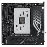 Екран вводу/виводу та радіатор M.2 мають перфоровану металеву сітку, яка може або відбивати світіння внутрішніх RGB-компонентів, або плавно зливатися з тінями непомітної збірки. Текст у кібернетичному стилі та гострі, кутасті деталі чітко вказують на приналежність цієї материнської плати до сімейства ROG Strix.