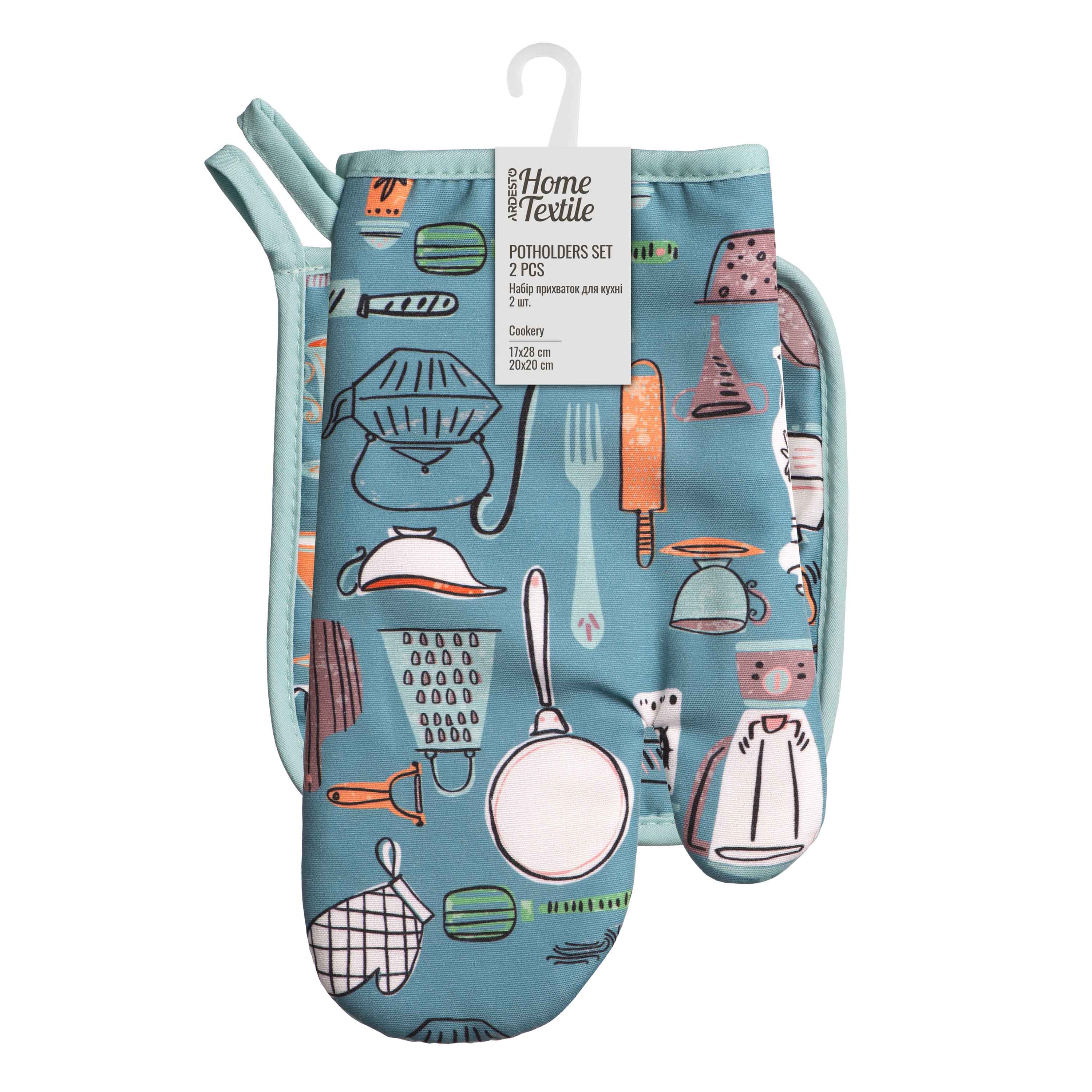 Головна - Побутова техніка, інструменти та товари для дому - Домашній текстиль - Текстиль для кухні - Прихватки - ARDESTO - Набір прихваток для кухні Cookery 17х28см, 20х20см, 90% поліестер, 10% бавовна
