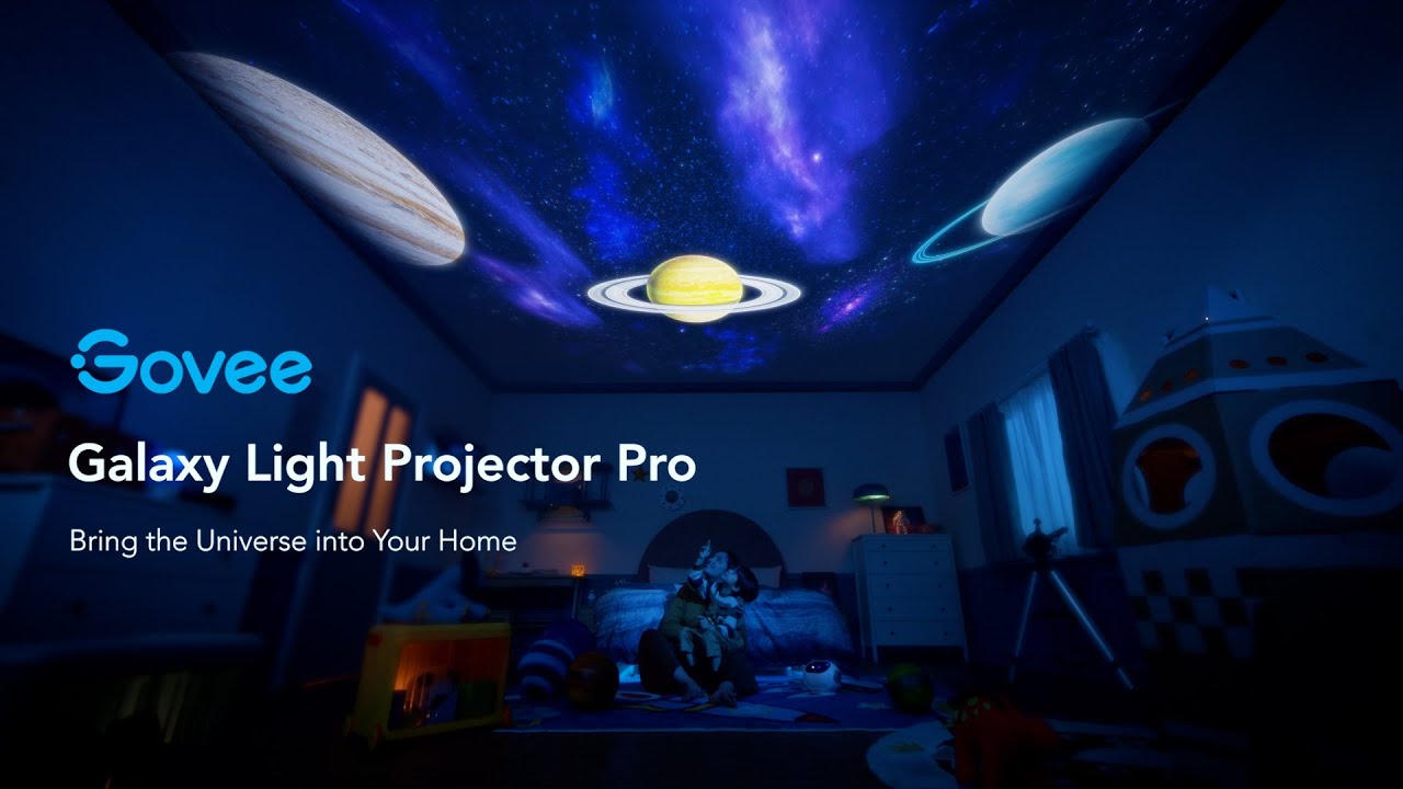 Принесіть Всесвіт у свій дім. Відчуйте нескінченне космічне диво з проєктором Govee Galaxy Light Projector. Завдяки 8 дискам, 38 сценам, динаміку Bluetooth та 37 білим шумам, він перетворює простір на захопливий всесвіт для спалень, стель та святкового декору.