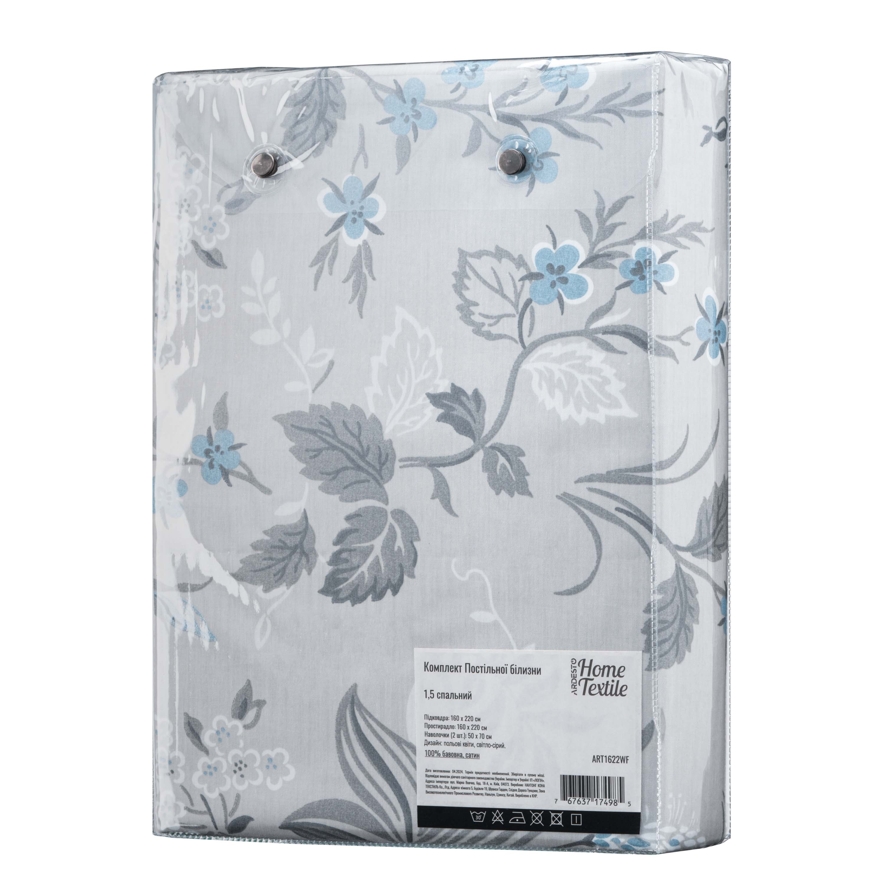 КПБ 1.5сп Ardesto Gloria, підковдра 160х220см, простирадло 160х220см, наволочки (2) 50х70см, 100% бавовна, сатин, польові квіти, сірий світлий