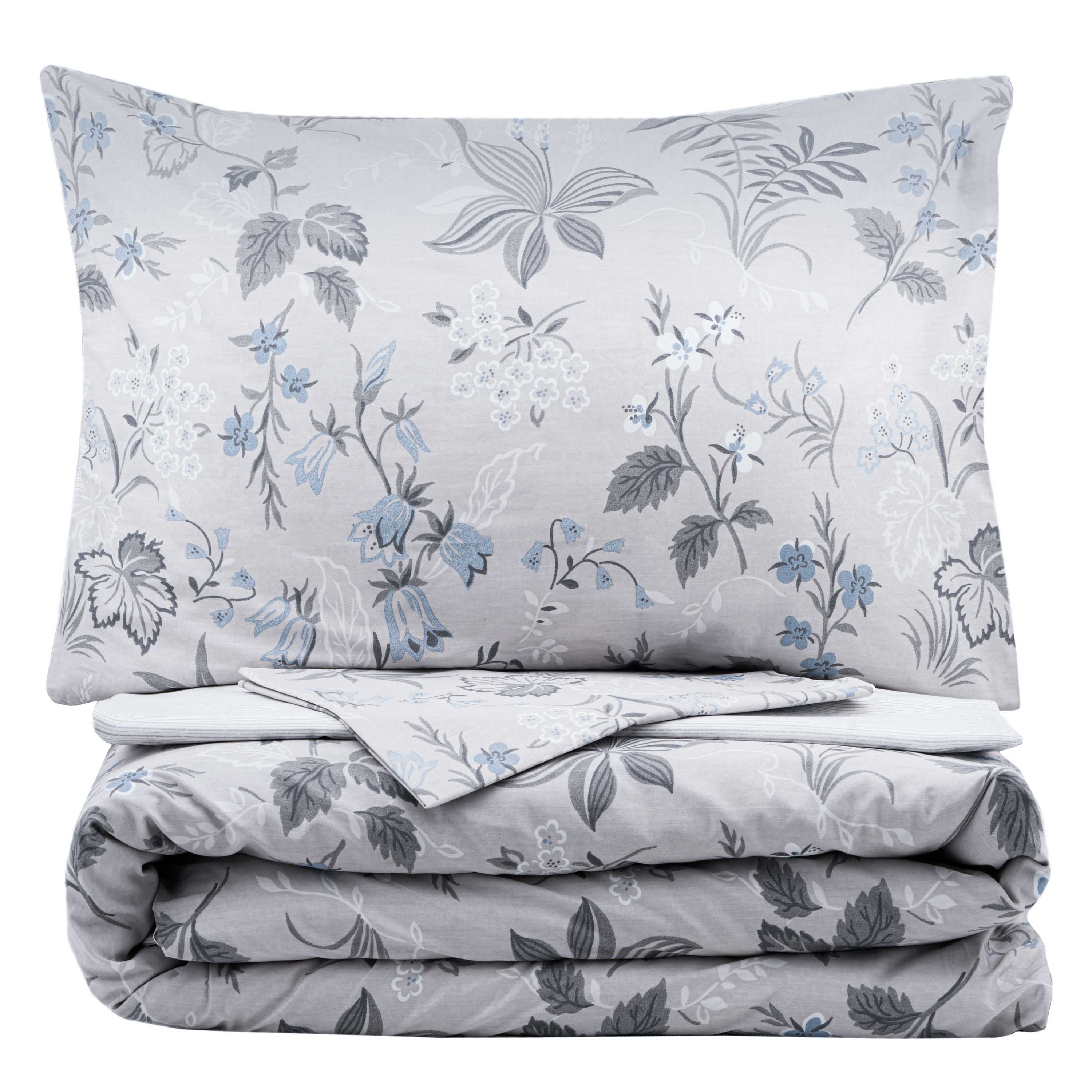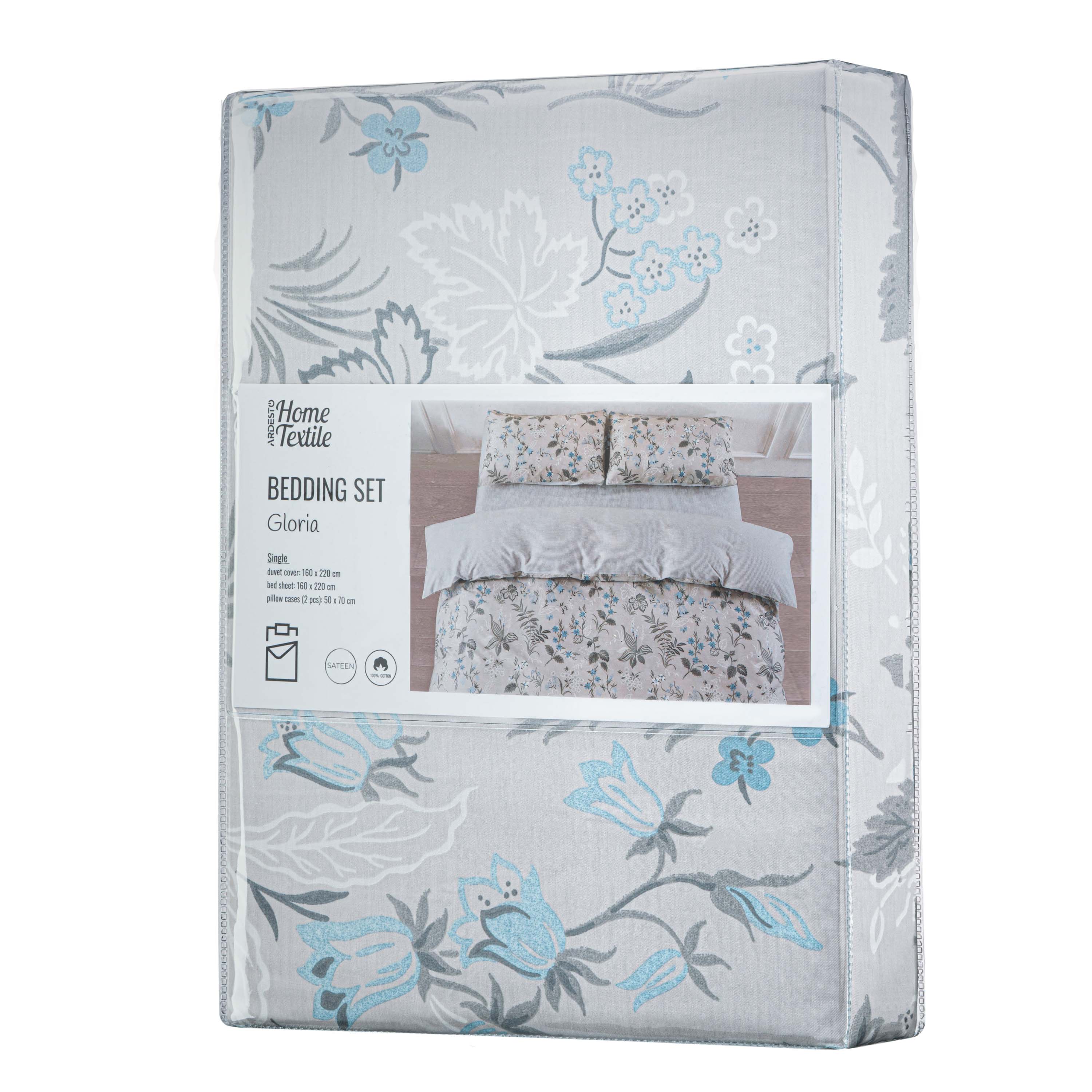 Головна - Побутова техніка, інструменти та товари для дому - Домашній текстиль - Текстиль для спальні - Комплекти постільної білизни - ARDESTO - КПБ 1.5сп Gloria, підковдра 160х220см, простирадло 160х220см, наволочки (2) 50х70см, 100% бавовна, сатин, польові квіти, сірий світлий