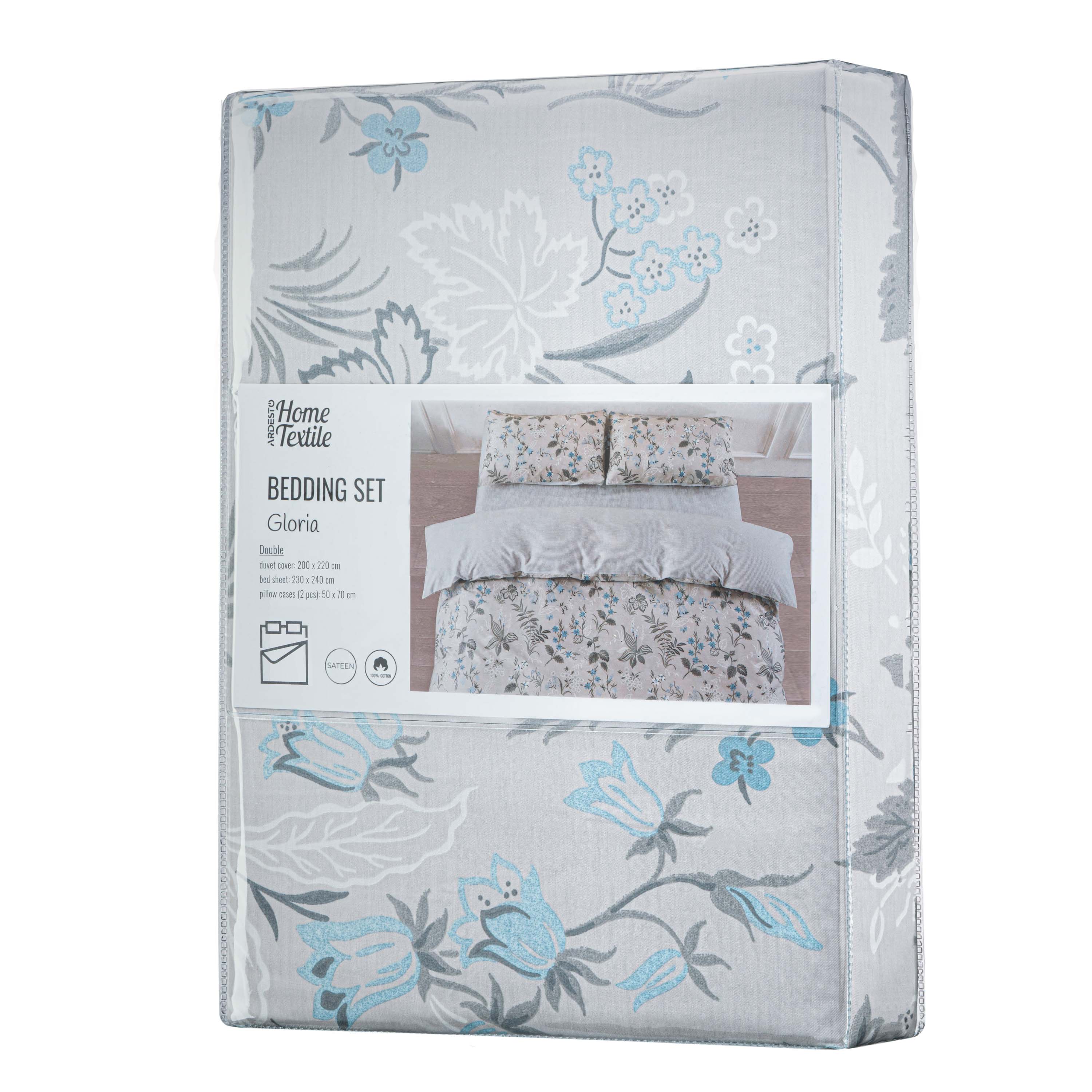 Головна - Побутова техніка, інструменти та товари для дому - Домашній текстиль - Текстиль для спальні - Комплекти постільної білизни - ARDESTO - КПБ 2.0сп Gloria, підковдра 200х220см, простирадло 230х240см, наволочки (2) 50х70см, 100% бавовна, сатин, польові квіти, сірий світлий