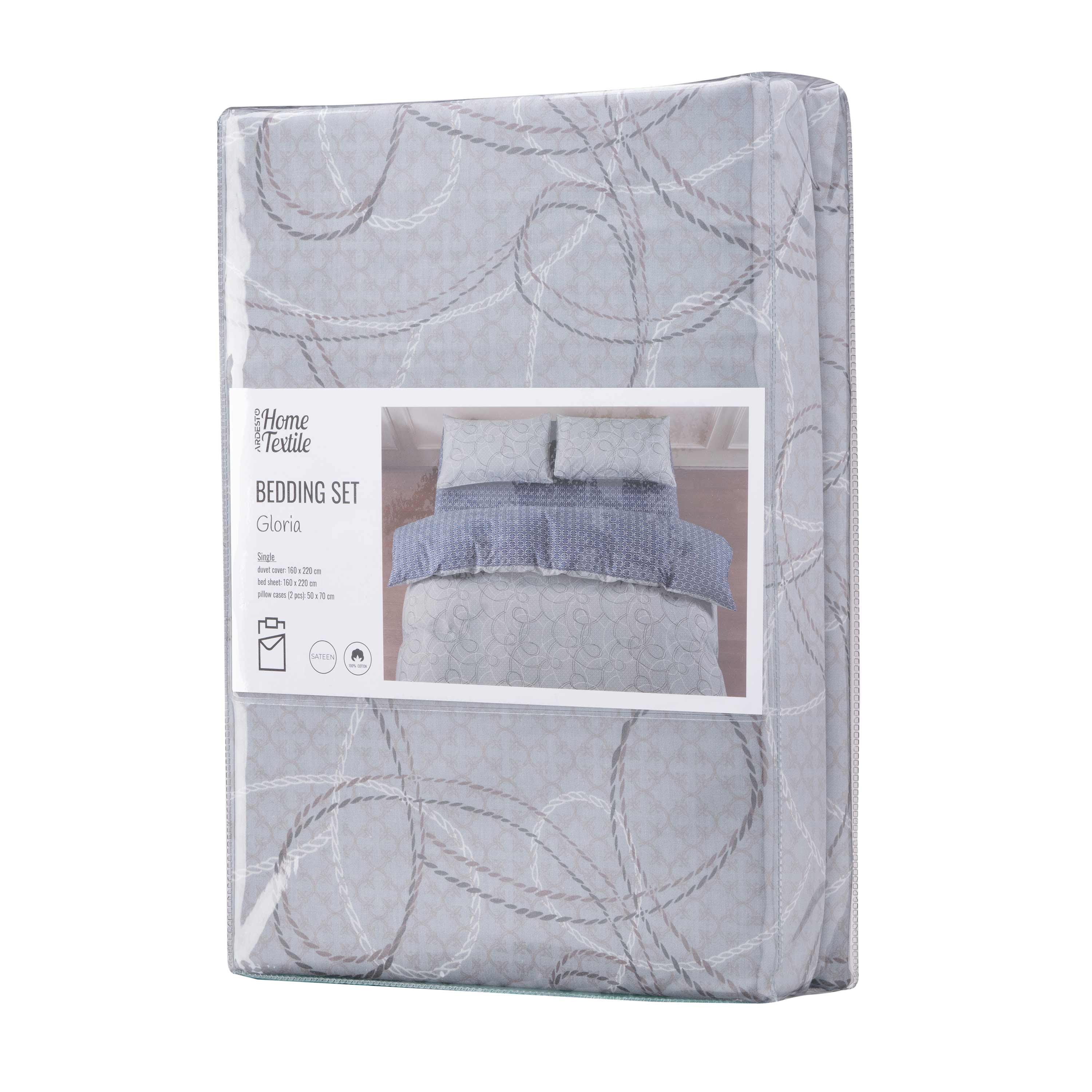 ARDESTO КПБ 1.5сп Gloria, підковдра 160х220см, простирадло 160х220см, наволочки (2) 50х70см, 100% бавовна, сатин, геометрія, сіро-синій