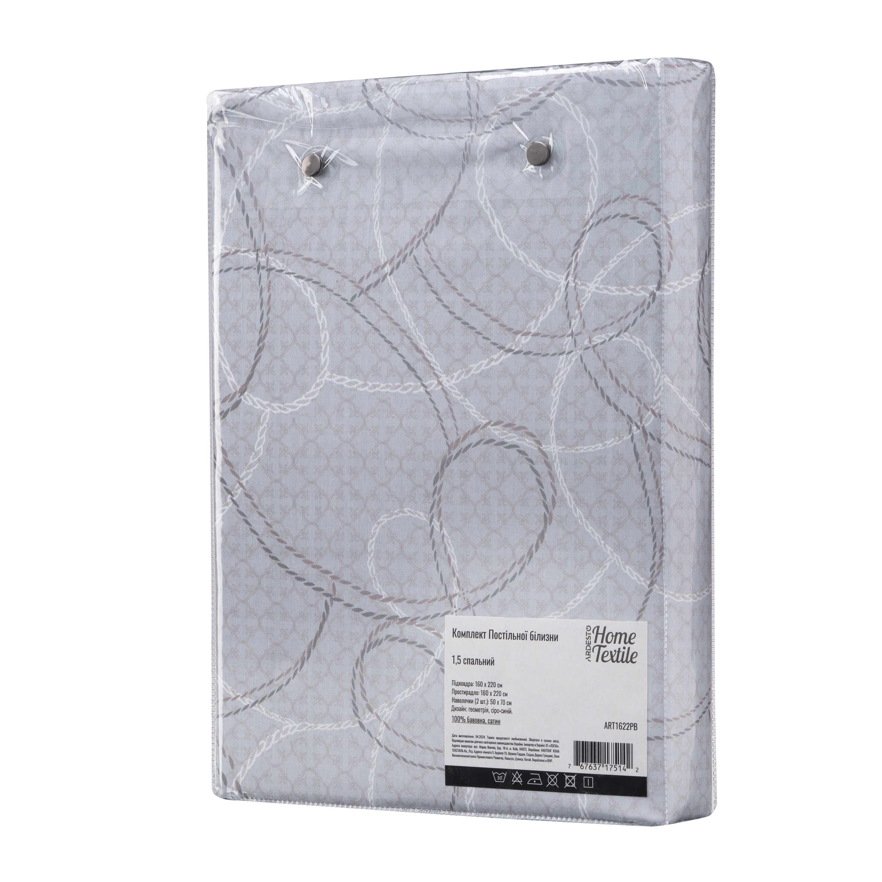 Головна - Побутова техніка, інструменти та товари для дому - Домашній текстиль - Текстиль для спальні - Комплекти постільної білизни - ARDESTO - КПБ 1.5сп Gloria, підковдра 160х220см, простирадло 160х220см, наволочки (2) 50х70см, 100% бавовна, сатин, геометрія, сіро-синій