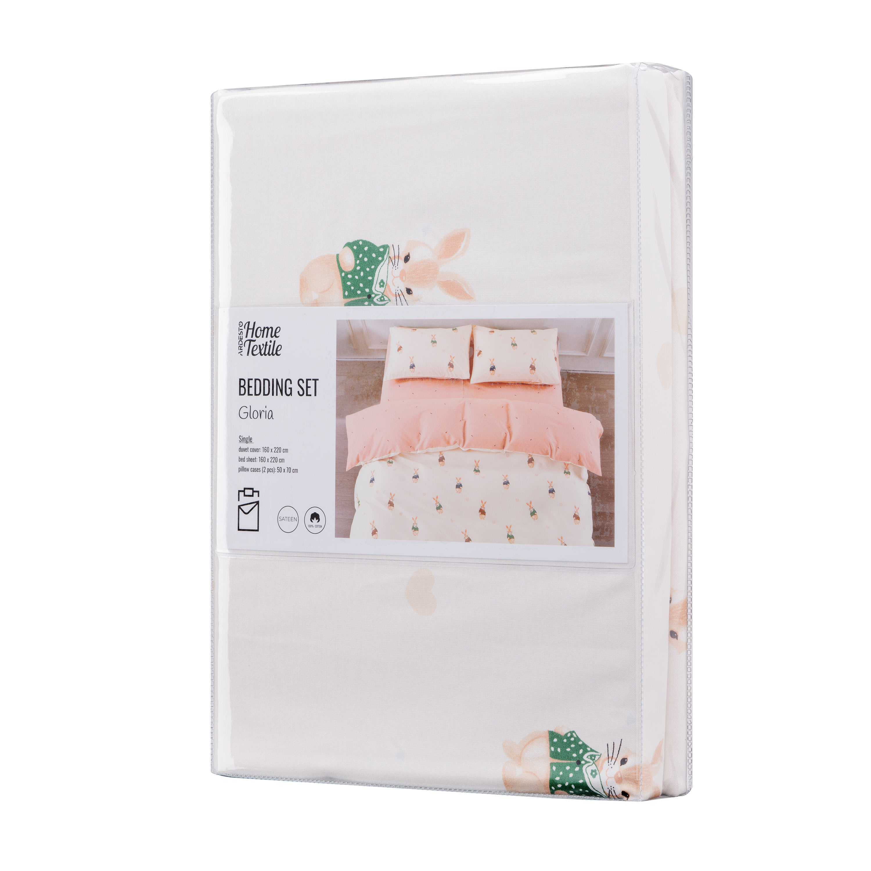 Комплект постільної білизни Gloria – це поєднання витонченого дизайну й безкомпромісної якості. Вироблена зі 100 % бавовняного сатину щільністю 200 ТС, постіль подарує винятковий комфорт і затишок. М’яка тканина ніжно пестить шкіру, забезпечуючи її дихання і створюючи відчуття свіжості та легкості. Дизайн із милим принтом додає спальному місцю особливого шарму.