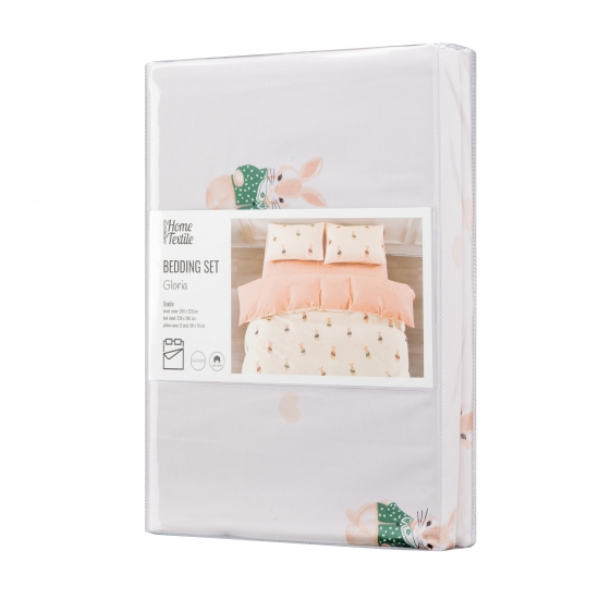 Комплект постільної білизни Gloria – це поєднання витонченого дизайну й безкомпромісної якості. Вироблена зі 100 % бавовняного сатину щільністю 200 ТС, постіль подарує винятковий комфорт і затишок. М’яка тканина ніжно пестить шкіру, забезпечуючи її дихання і створюючи відчуття свіжості та легкості. Дизайн із милим принтом додає спальному місцю особливого шарму.