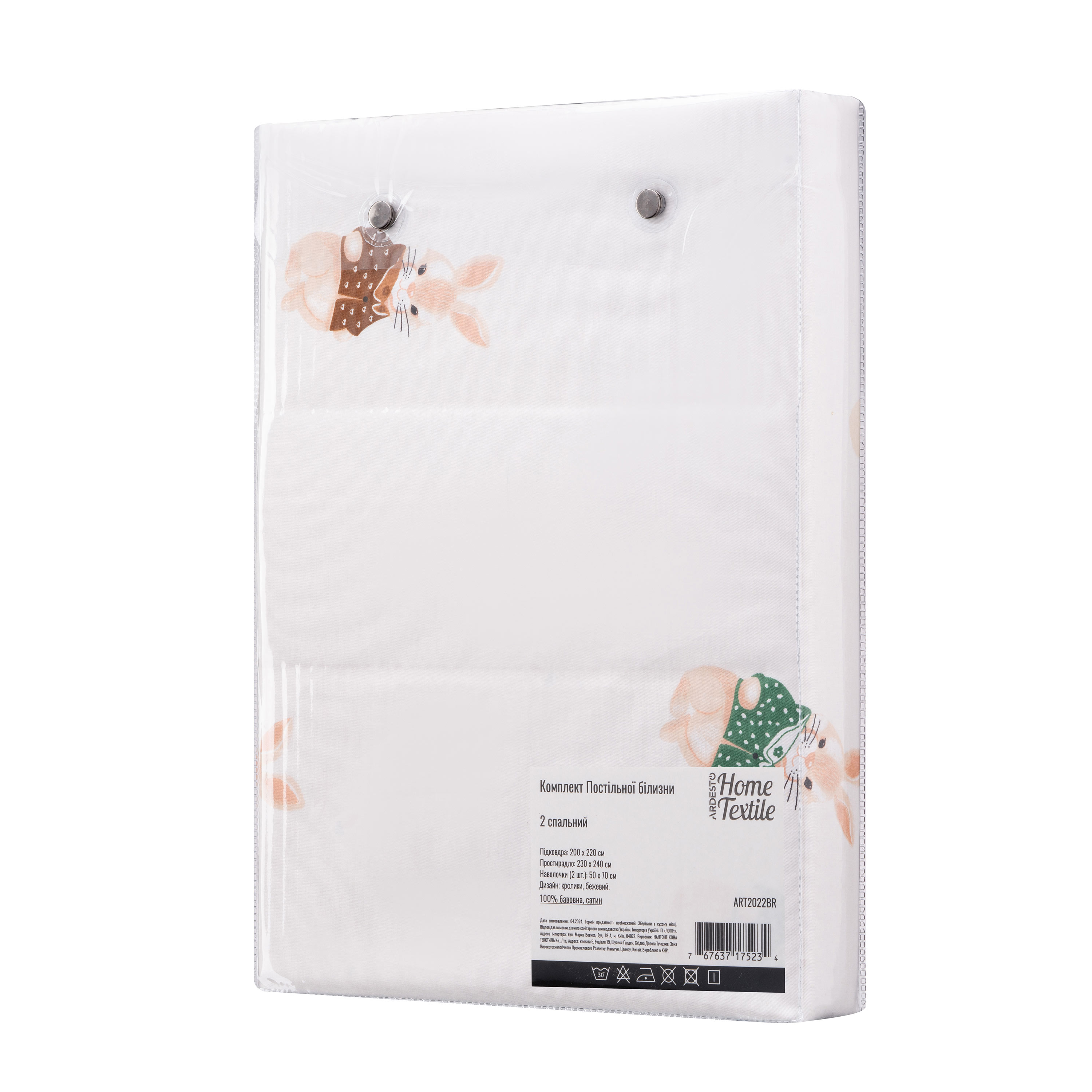 Набір постільної білизни 2,0сп Ardesto Gloria, 200х220см, 100% бавовна, сатин, кролики, бежевий (ART2022BR)