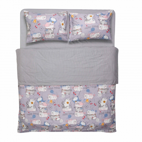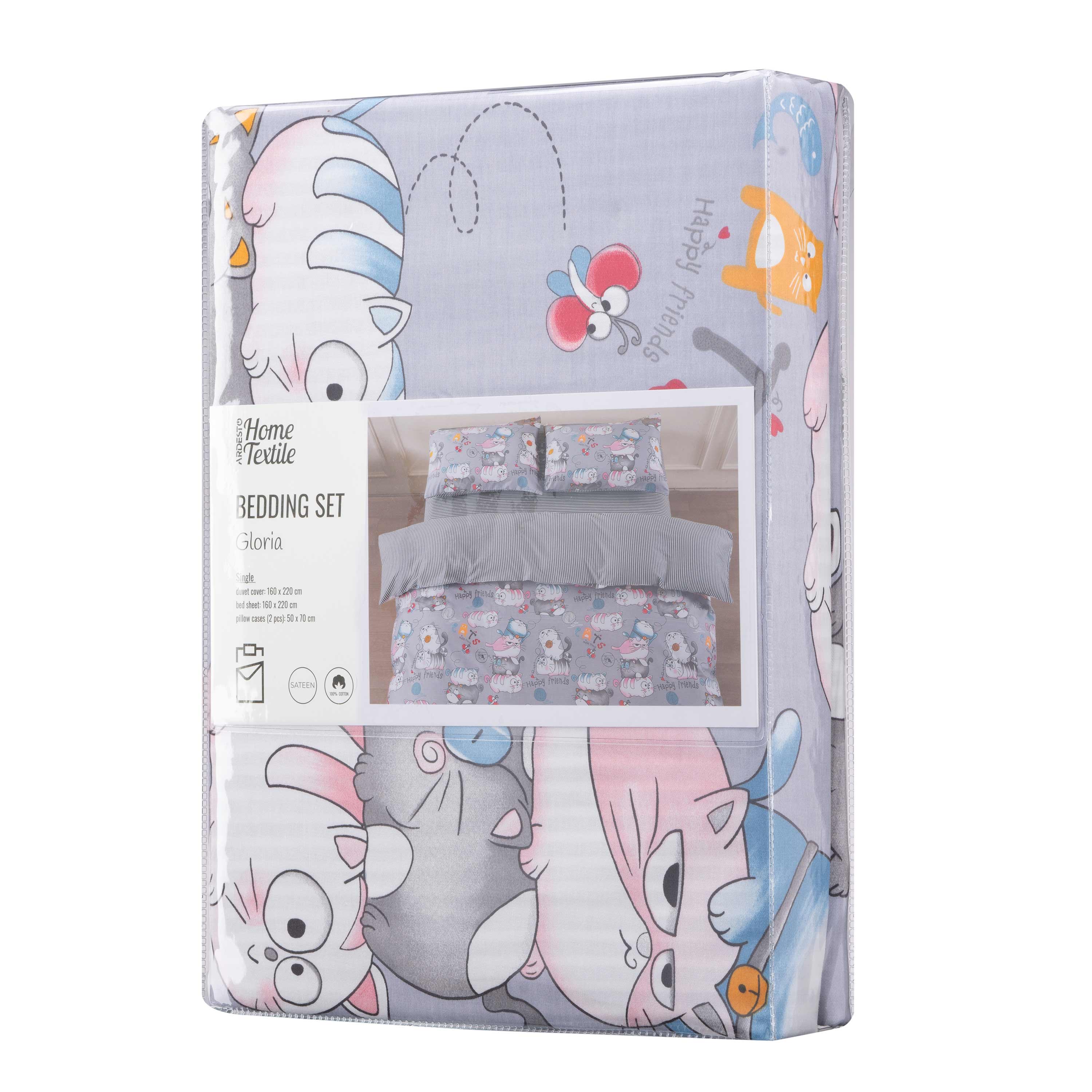КПБ 1,5сп ARDESTO Gloria, підковдра 160х220см, простирадло 160х220см, наволочки (2) 50х70см, 100% бавовна, сатин, веселі котики, смужка