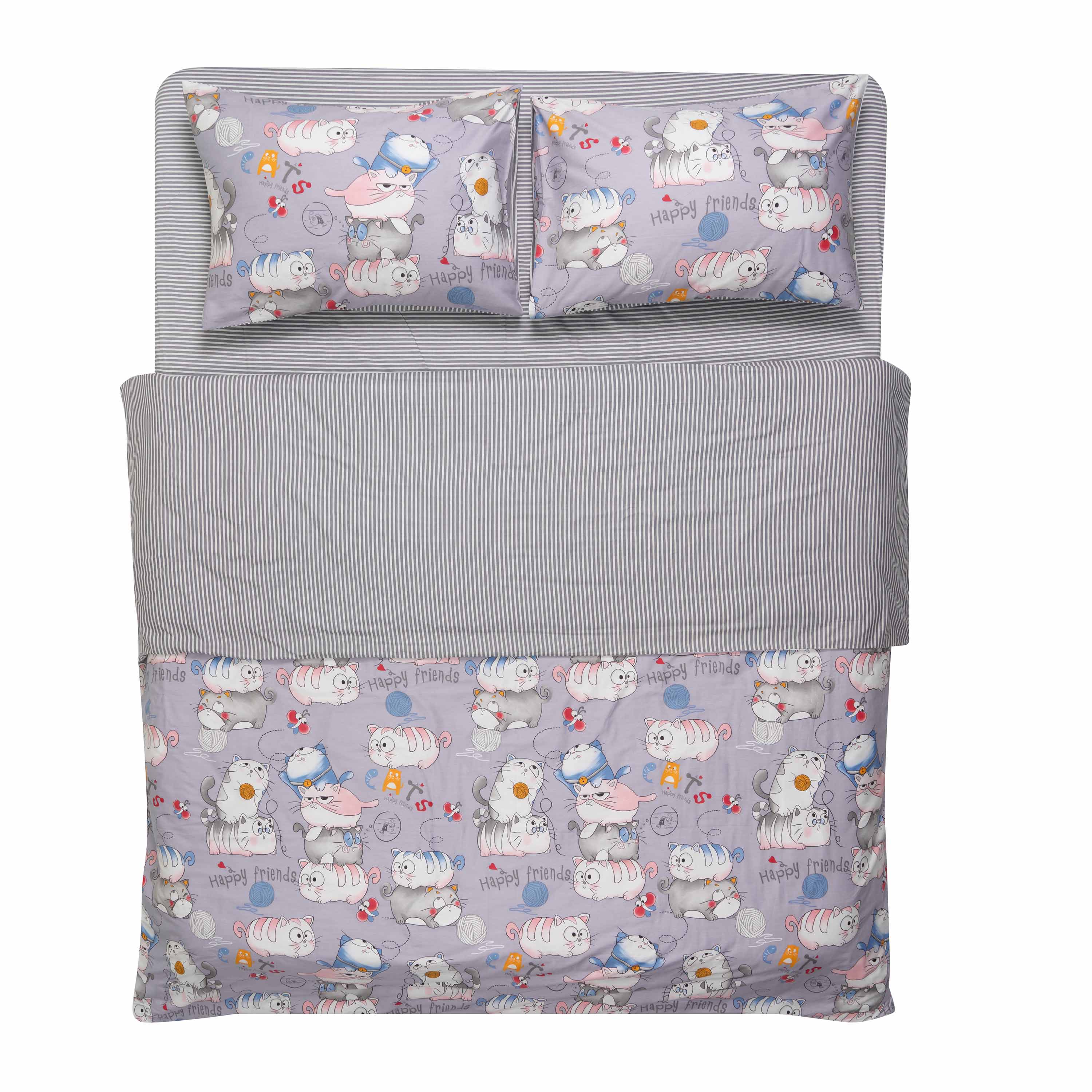 Головна - Побутова техніка, інструменти та товари для дому - Домашній текстиль - Текстиль для спальні - Комплекти постільної білизни - ARDESTO - КПБ 1.5сп Gloria, підковдра 160х220см, простирадло 160х220см, наволочки (2) 50х70см, 100% бавовна, сатин, веселі котики, смужка