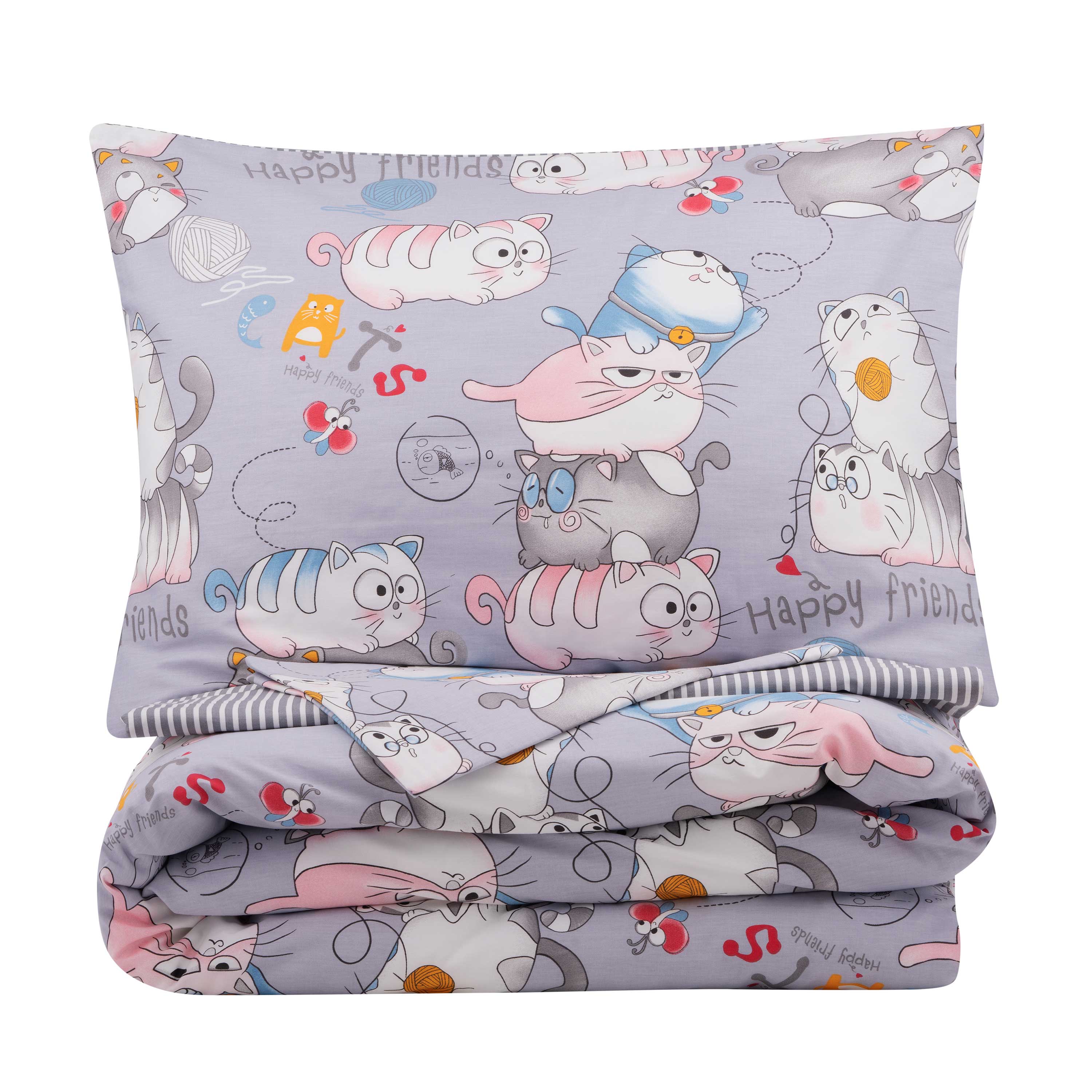 Набір постільної білизни 1,5сп Ardesto Gloria, 160х220см, 100% бавовна, сатин, веселі котики, смужка (ART1622FC)