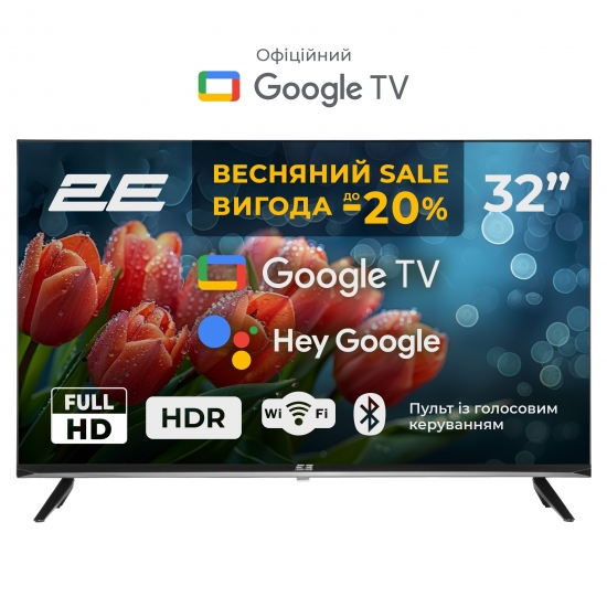 2E Телевизор 32" LED FHD 60Hz Smart Google TV Black