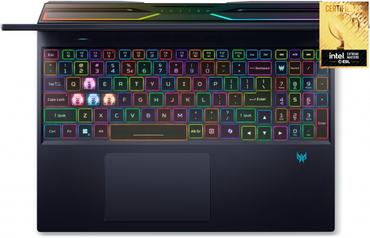 Пориньте в неоновий ландшафт із зачаровуючим логотипом Predator та нескінченною дзеркальною підсвіткою, що демонструє динамічні світлові RGB-ефекти. Цей ноутбук - справжній шедевр продуктивності та візуального сприйняття в поєднанні з можливістю налаштування RGB підсвітки для кожної клавіші та окремою зоною для WASD клавіш MagKey 3.0.