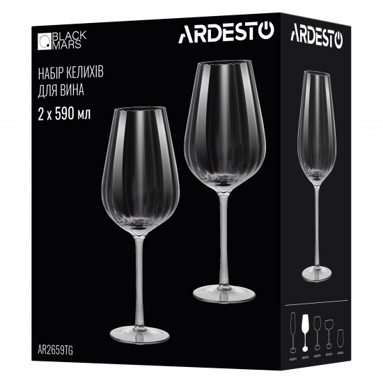 Технічні характеристики Набір келихів для вина Ardesto Black Mars Orion 590мл, 2шт, скло, прозоро-сірий: