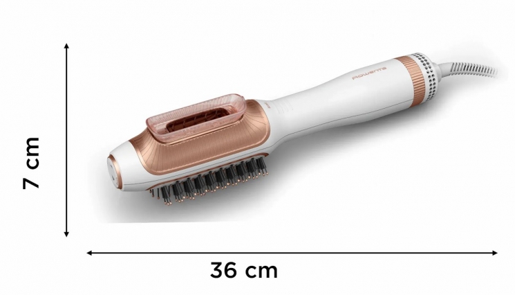 Фен і щітка з гарячим повітрям в одному пристрої — таке поєднання створює комфорт під час попереднього сушіння й допомагає легко укладати волосся завдяки щітці з гарячим повітрям.