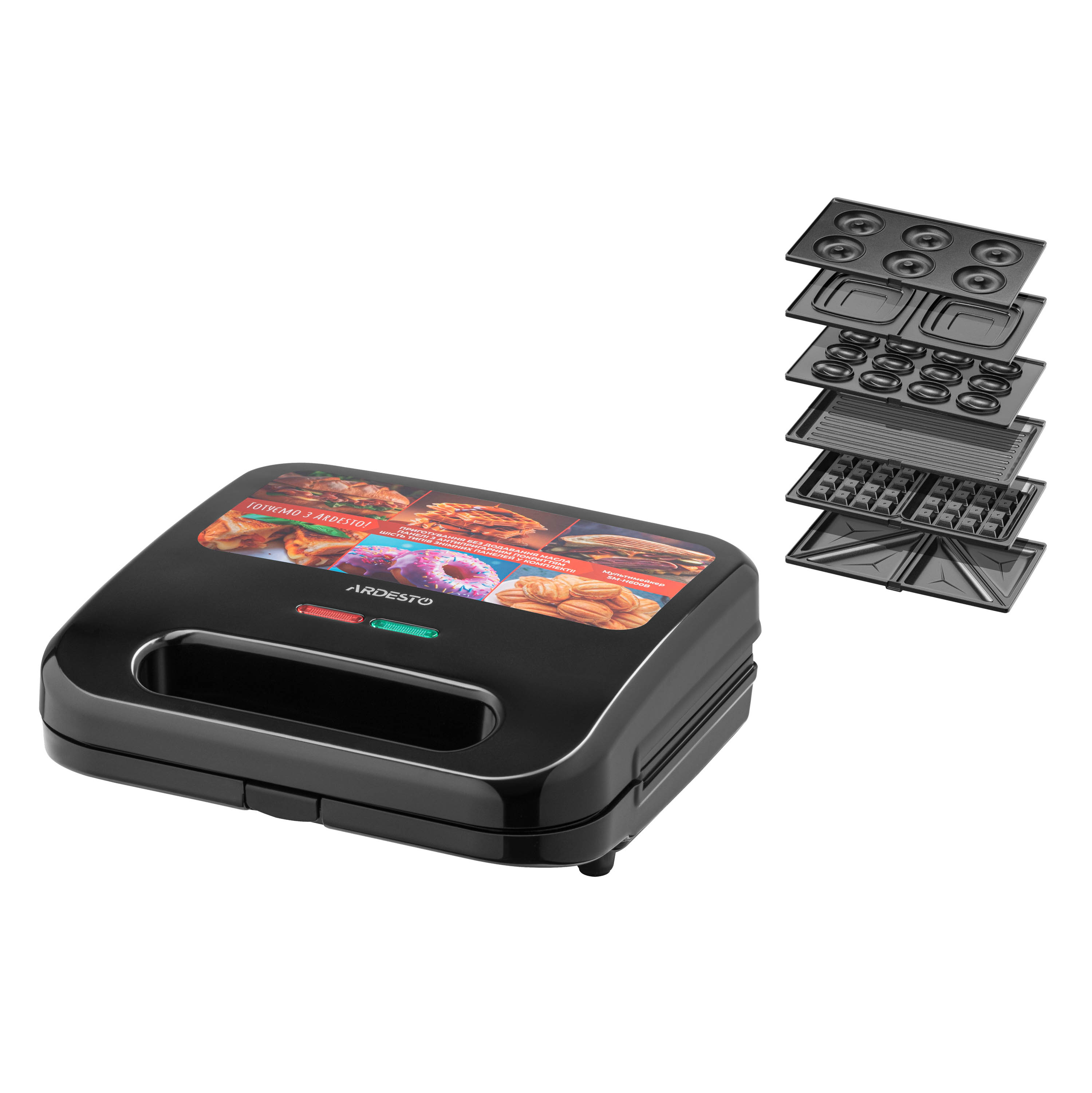 Мультимейкер ARDESTO SM-H600B є універсальним кухонним пристроєм, із яким можна приготувати багато різноманітних страв за допомогою змінних пластин. Перелік страв, які можна приготувати завдяки знімним пластинам, вражає: сендвічі квадратної форми, паніні, овочі гриль, гриби, вафлі товстого типу (традиційні віденські, брюссельські тощо), печиво «Горішки», панкейки, оладки та пончики. Пластини розміром 23 × 13 см мають протипригарне покриття. Готувати можна, дотримуючись принципів здорового харчування – без додавання масла, та зберігаючи корисні властивості продуктів.