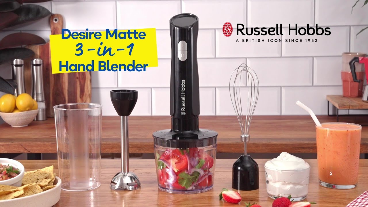 Ручний блендер 3-в-1 Russell Hobbs Desire Matte Charcoal у преміальному матовому вугільно-сірому кольорі з чорними акцентами легко подрібнює овочі, готує смузі та збиває вершки. Завдяки потужності у 500 Вт цей блендер обробляє до 600 мл інгредієнтів одним натисканням кнопки. Дві швидкості дозволяють контролювати текстуру: від шовковисто-гладкої до з апетитними шматочками. Знімні компоненти блендера легко очищуються, що значно полегшує догляд за приладом і робить його використання максимально комфортним.
